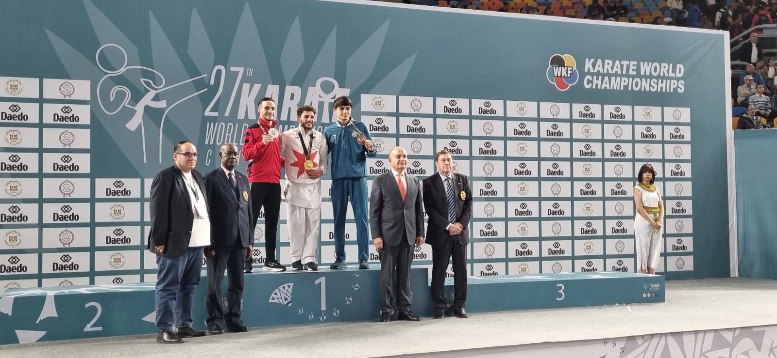 وكتب العضايلة في تغريدة له على حسابه على مواقع التواصل الاجتماعي "إنجازٌ كبير نفخرُ ونعتزّ به بتحقيق البطل الأردني عفيف غيث الميدالية الذهبية في بطولة العالم للكراتيه لوزن تحت 67 كغم، والتي تستضيفها الشقيقة مصر.