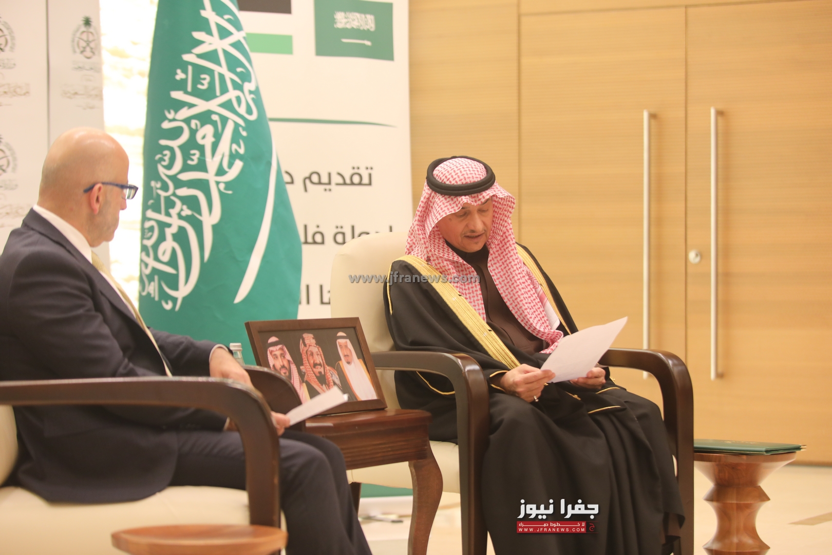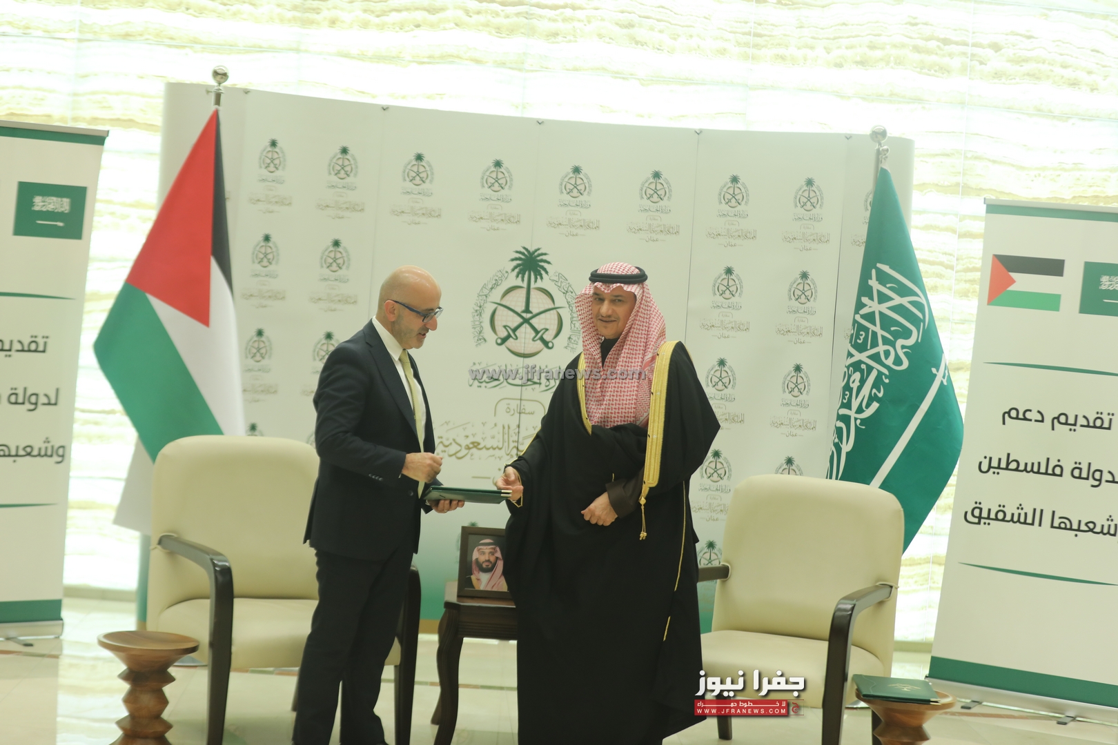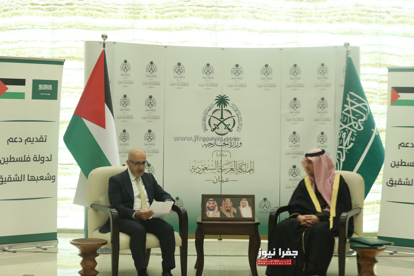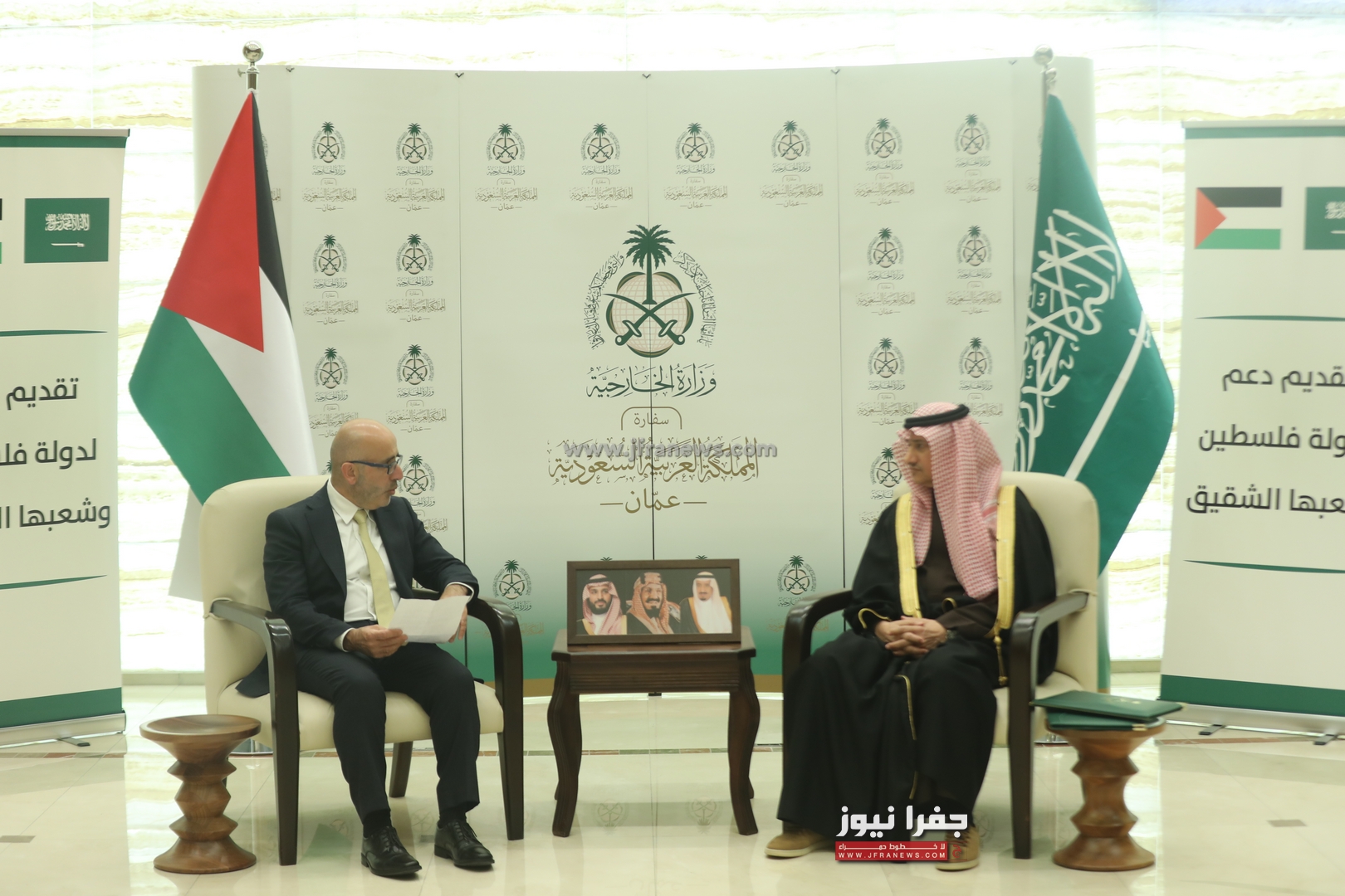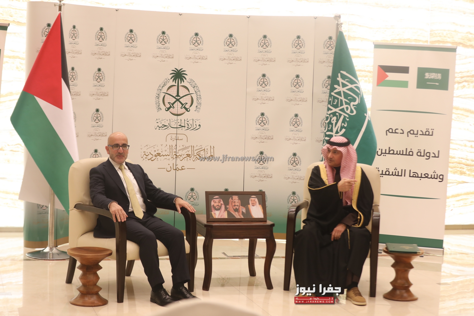 سلّم سفير خادم الحرمين الشريفين لدى الأردن صاحب السمو الأمير منصور بن خالد بن فرحان آل سعود، بمقر السفارة اليوم، وزير التخطيط والتعاون الدولي ومُسَيِر أعمال وزارة المالية في الحكومة الفلسطينية معالي الدكتور اسطفيان سلامة، الدعم المالي المقدم لدولة فلسطين من المملكة العربية السعودية بقيمة 90 مليون دولار، في إطار الدعم السعودي المستمر لدولة فلسطين للعام 2025.