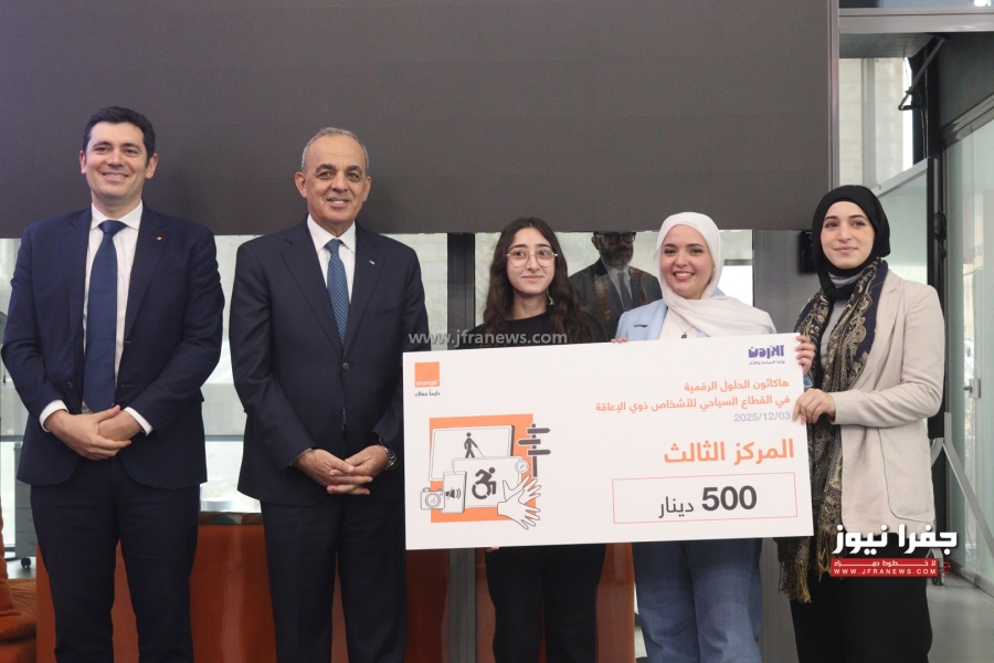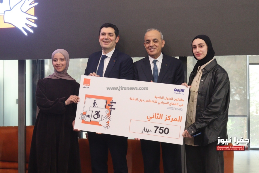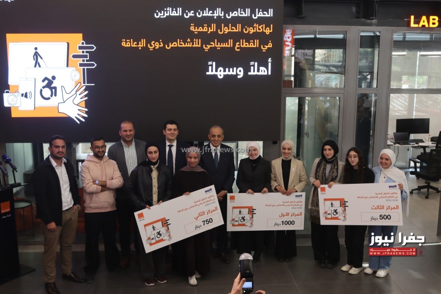 تحت رعاية وحضور معالي وزير السياحة والآثار، الدكتور عماد حجازين، أعلنت أورنج الأردن، وبمناسبة اليوم العالمي للأشخاص ذوي الإعاقة الذي يصادف 3 كانون الأول، عن الفائزين في "هاكاثون الحلول الرقمية في القطاع السياحي للأشخاص ذوي الإعاقة"، الذي أطلقته بالتزامن مع يوم السياحة العالمي، وذلك في إطار جهودها لتعزيز الابتكار وتمكين الأشخاص ذوي الإعاقة من المشاركة الكاملة في التجربة السياحية، وذلك ضمن مبادراتها المبتكرة تحت مظلة حملة "قدراتنا مختلفة، ولكن إمكانياتنا أكيدة"، الهادفة إلى تعزيز الشمول الرقمي وتمكين جميع أفراد المجتمع.