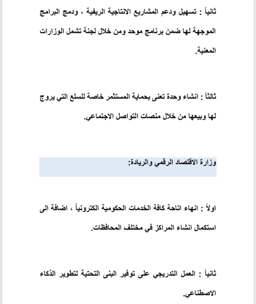 استكمال خطة التحول الرقمي وتوفير الخدمات الحكومية إلكترونياً بالكامل.