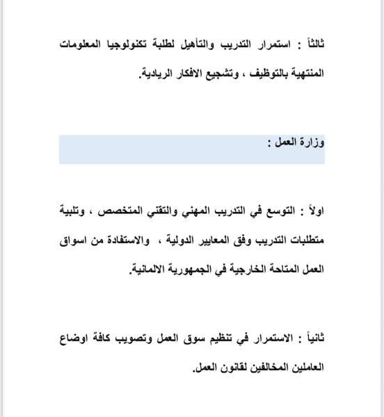 التوسع في التدريب المهني والتقني وفق معايير دولية، خاصة لسوق العمل الألماني.