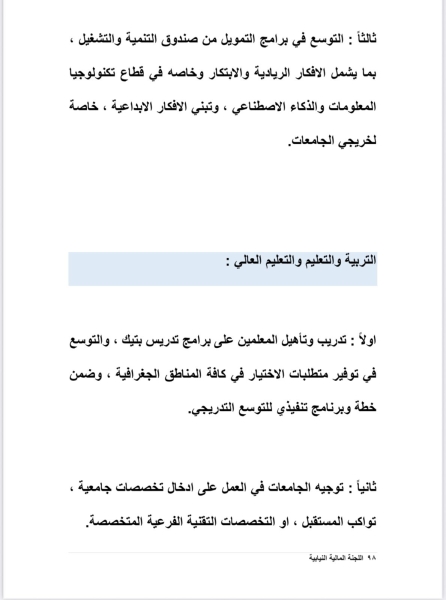 توجيه الجامعات لاعتماد تخصصات تقنية ومستقبلية.