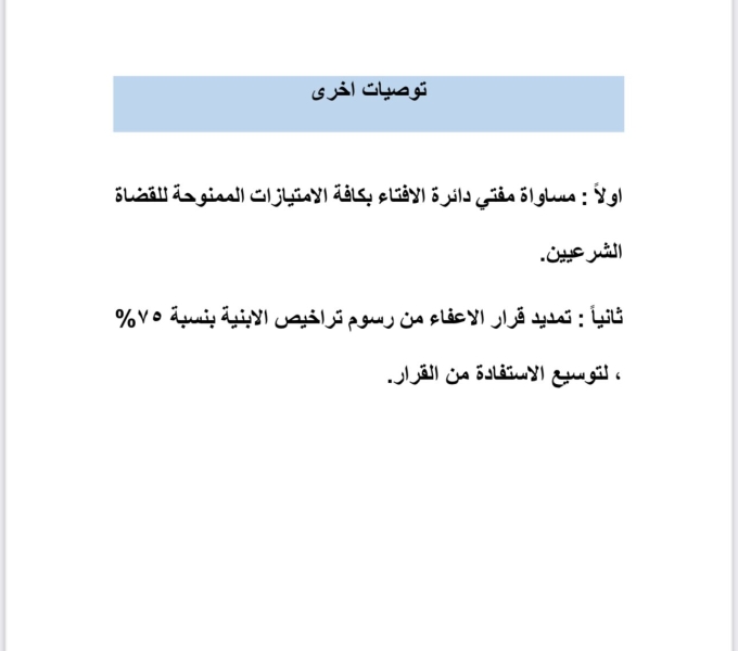 تمديد إعفاء رسوم الأبنية بنسبة 75%.
