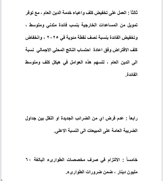 خفض كلف خدمة الدين العام، والاستفادة من التمويل الخارجي منخفض الفائدة، مع توقع انخفاض الفائدة نصف نقطة في 2025.