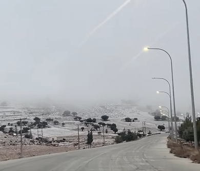 وشهدت منطقة الهيشة قرب وادي موسى جنوبي المملكة، تساقط زخات من الثلوج في ساعات الصباح الباكر.