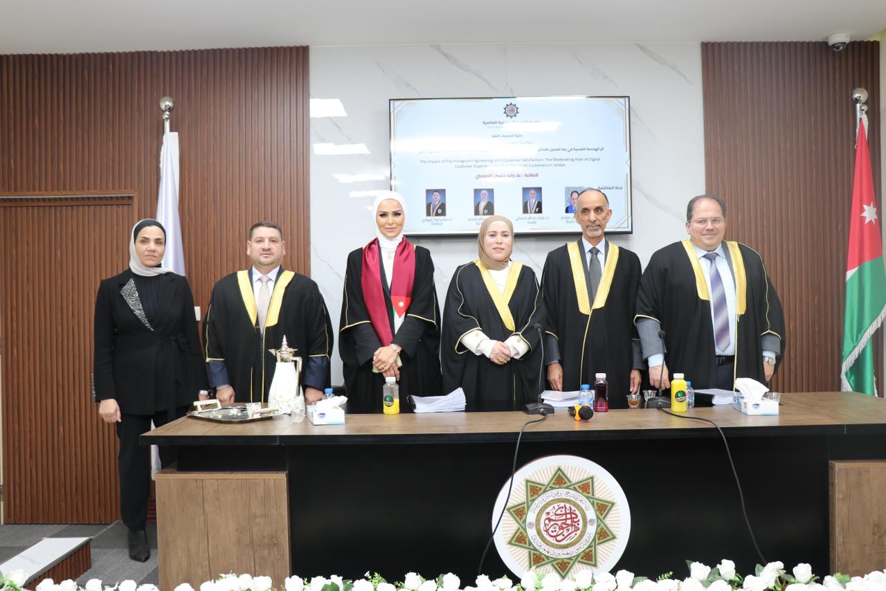 بمناسبة مناقشة أطروحتها لنيل درجة الدكتوراه في إدارة الأعمال من جامعة العلوم الإسلامية العالمية، وتخرّجها بتقدير امتياز وبأداء علمي متميّز نال إشادة لجنة المناقشة.