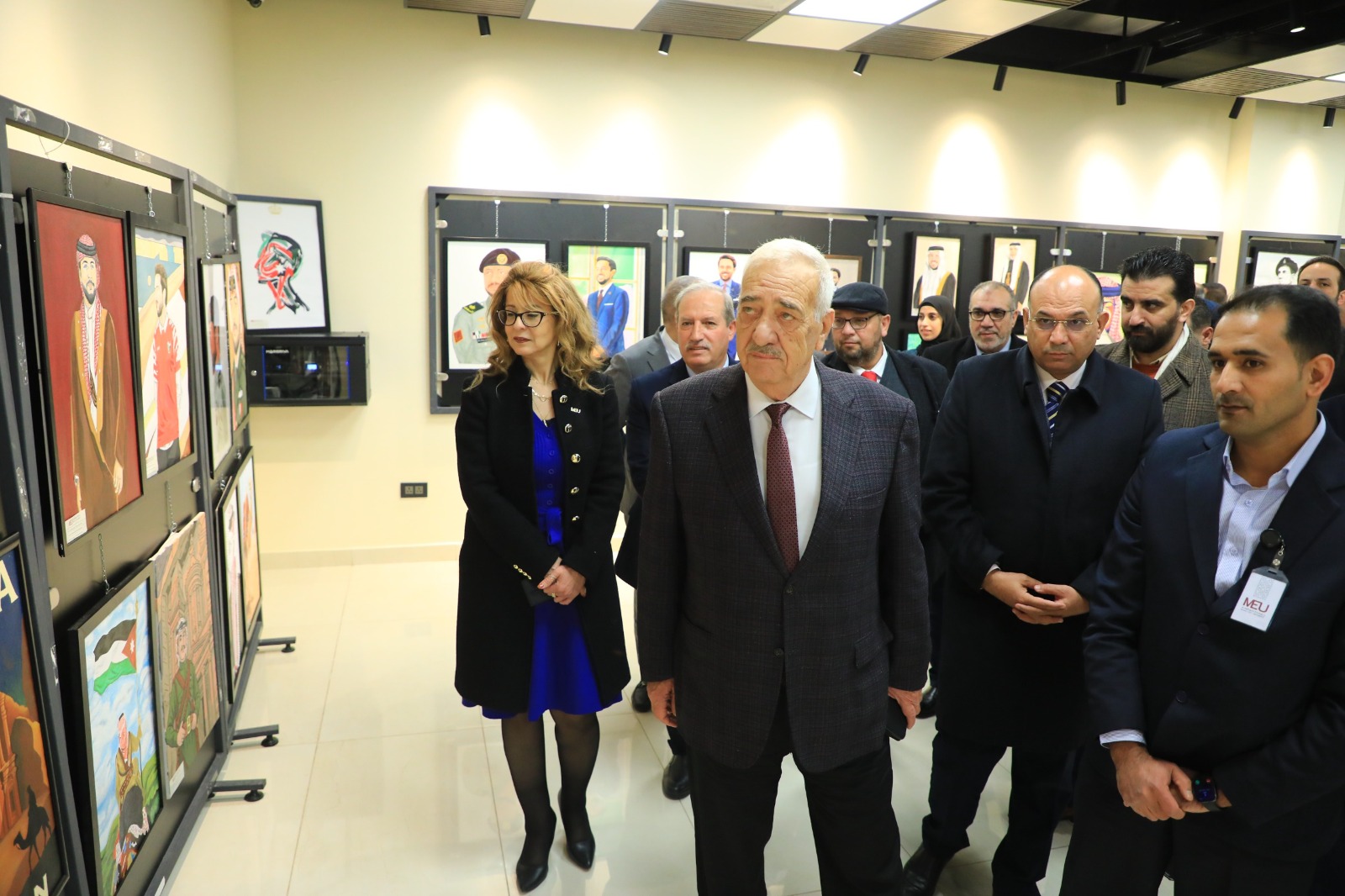 واشتملت فعاليات اليوم العلمي على تنظيم معرض "وطنيات"، قدّم من خلاله طلبة الكلية أعمالًا فنية وتصميمية تناولت مسيرة العائلة الهاشمية، مسلّطة الضوء على مراحل مختلفة من حياة جلالة الملك منذ طفولته المبكرة، إلى جانب سمو ولي العهد الأمير الحسين بن عبد الله الثاني، حيث عكست الأعمال وعي الطلبة بالتاريخ الوطني وقدرتهم على توظيف الفن في التعبير عن الهوية الأردنية والانتماء للوطن بأسلوب بصري منظم وواضح.