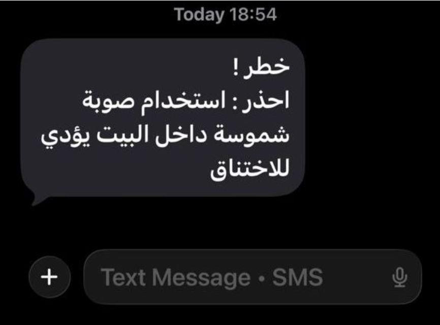 بدأت مديرية الأمن العام، بإرسال رسائل نصية تحذيرية (SMS) إلى المواطنين، تدعوهم فيها إلى عدم استخدام مدافئ الشموسة داخل المنازل لتسببها بالاختناق.