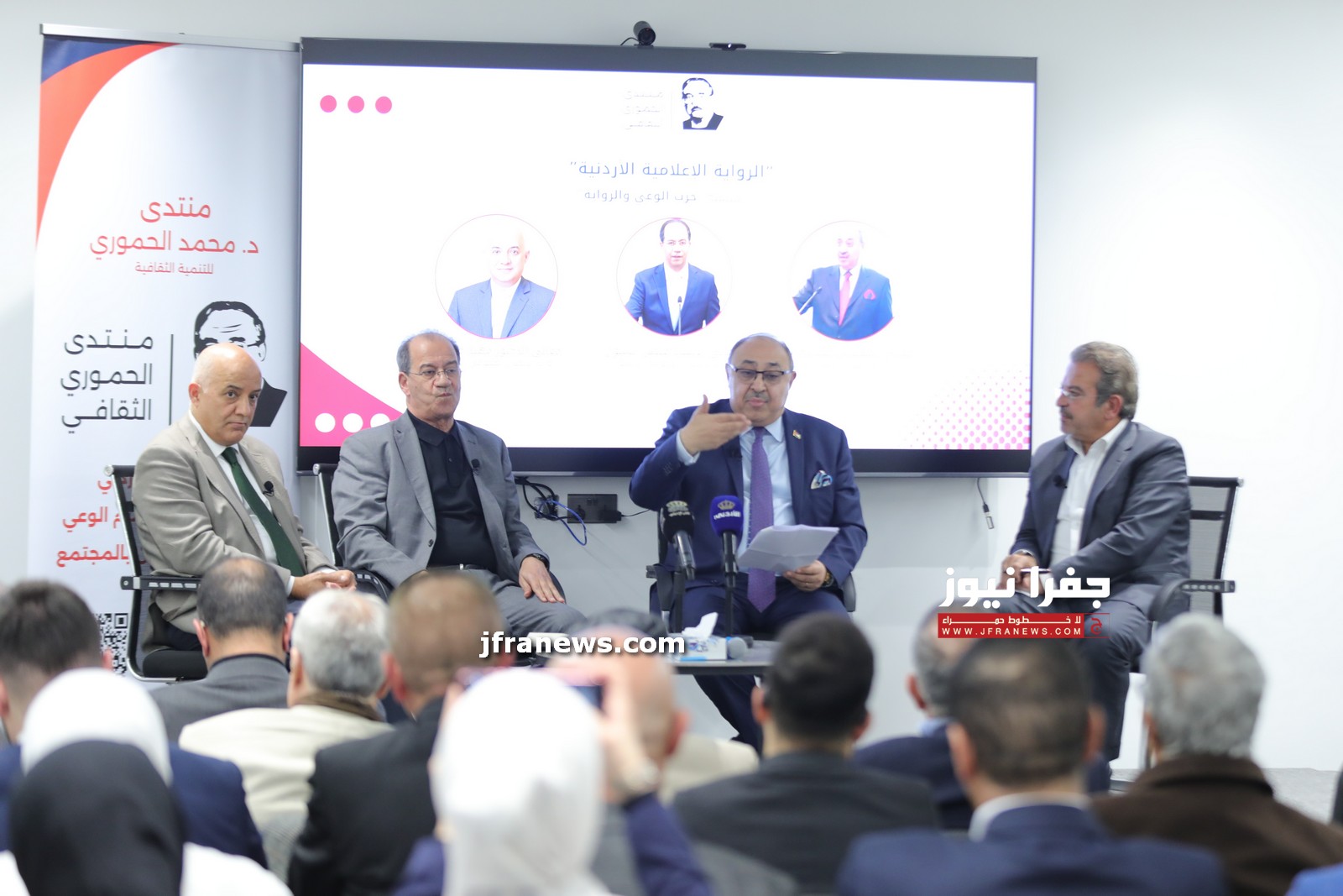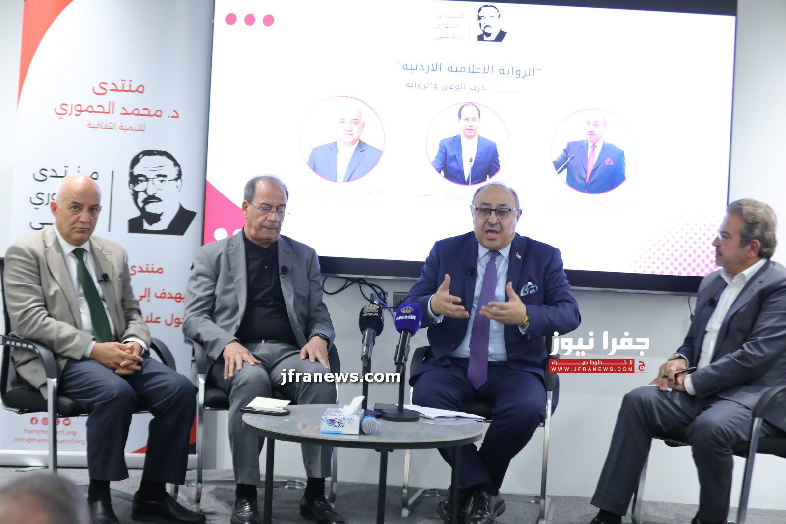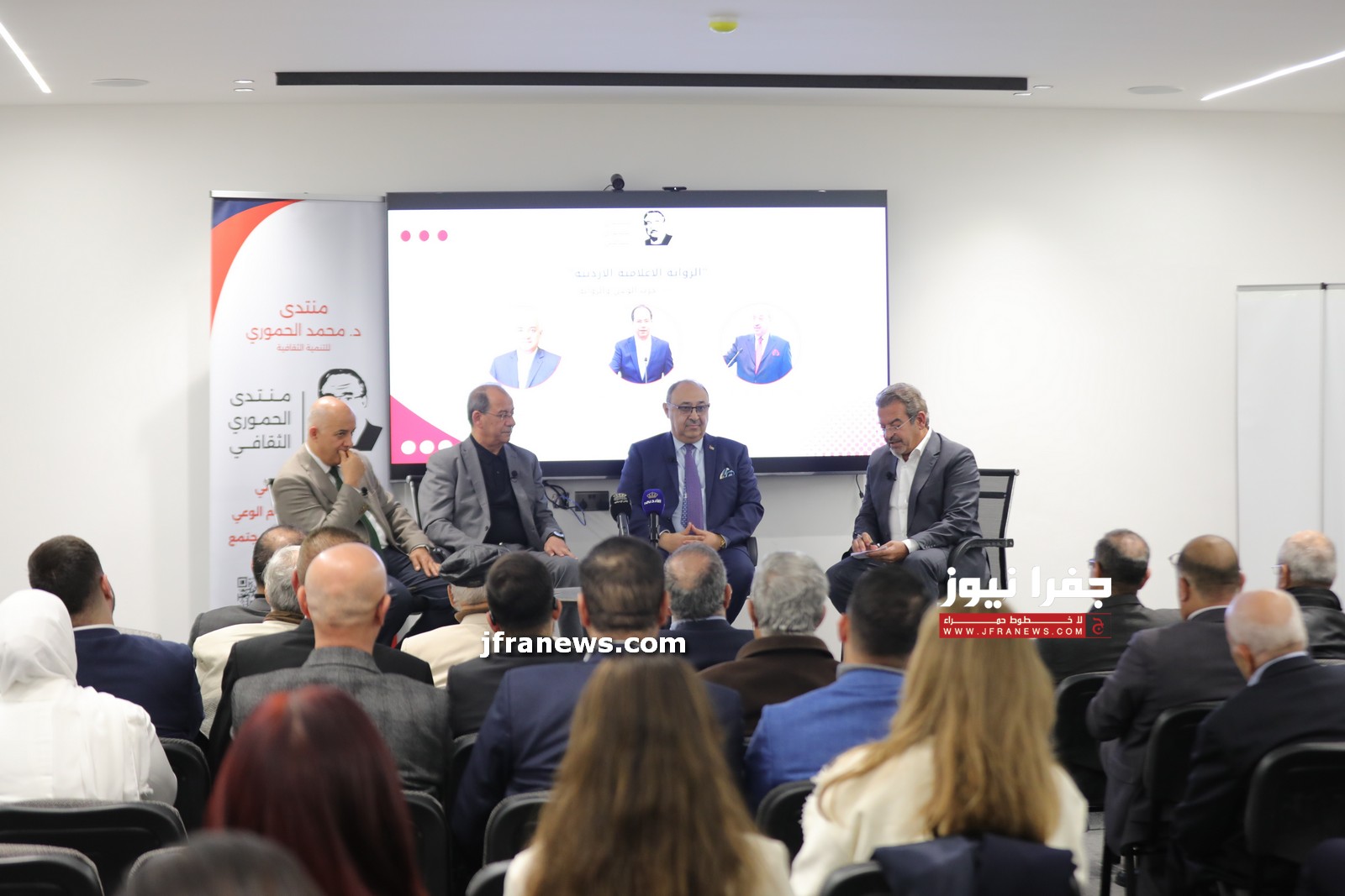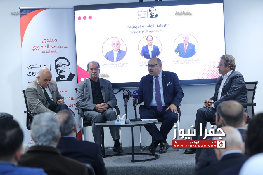 نظم منتدى محمد الحموري للتنمية الثقافية، مساء السبت، حوارية فكرية–إعلامية بعنوان "الرواية الإعلامية الأردنية"، بمشاركة كل من الأستاذ فيصل الشبول، والمهندس صخر دودين، والدكتور مهند المبيضين، وهم من أبرز الشخصيات التي تولّت منصب وزير الدولة لشؤون الإعلام والناطق الرسمي باسم الحكومة في مراحل مختلفة، وادار الحوار الإعلامي هاني البدري .