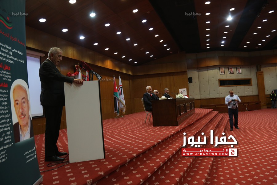 وألقى راعي الحفل كلمة حفلت بالثناء على الشاعر العربي الكبير وأكدت على الروابط الأخوية العريقة المتينة التي تجمع الأردن والعراق في المجالات كافة.