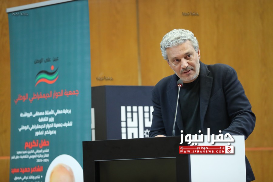 وألقى العين محمد داودية رئيس لجنة الحوار الديمقراطي الوطني، التي نظمت الاحتفالية كلمة أشاد فيها بالمكانة الشعرية الرفيعة التي بلغها الشاعر العربي الكبير حميد سعيد، الذي جاء فوزه المستحق بجائزة العويس الثقافية تأكيدًا عليها.