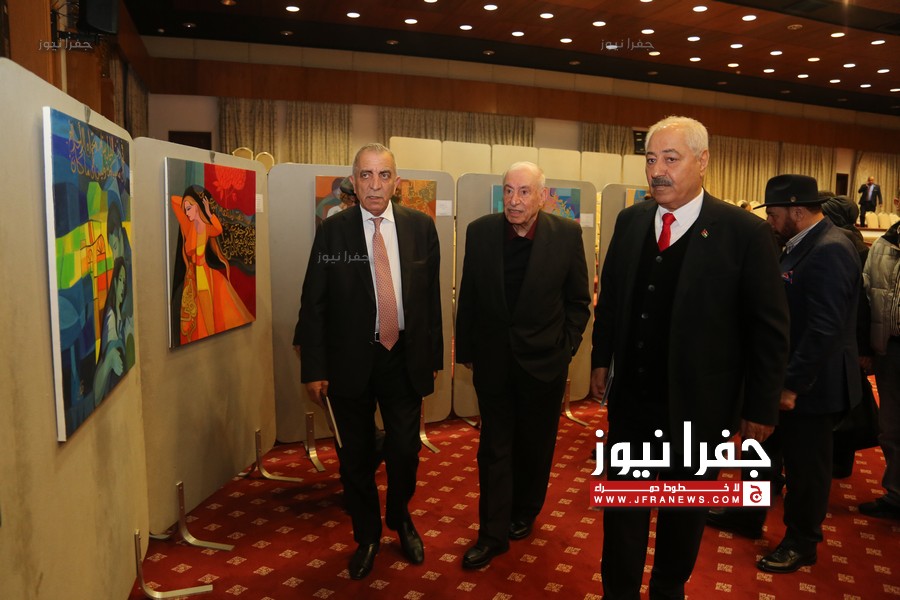 وافتتح وزير الثقافة في بداية الاحتفالية معرض الفنان التشكيلي العراقي الكبير الأستاذ أحمد الشهابي المستلهمة لوحاته من اشعار الشاعر حميد سعيد.