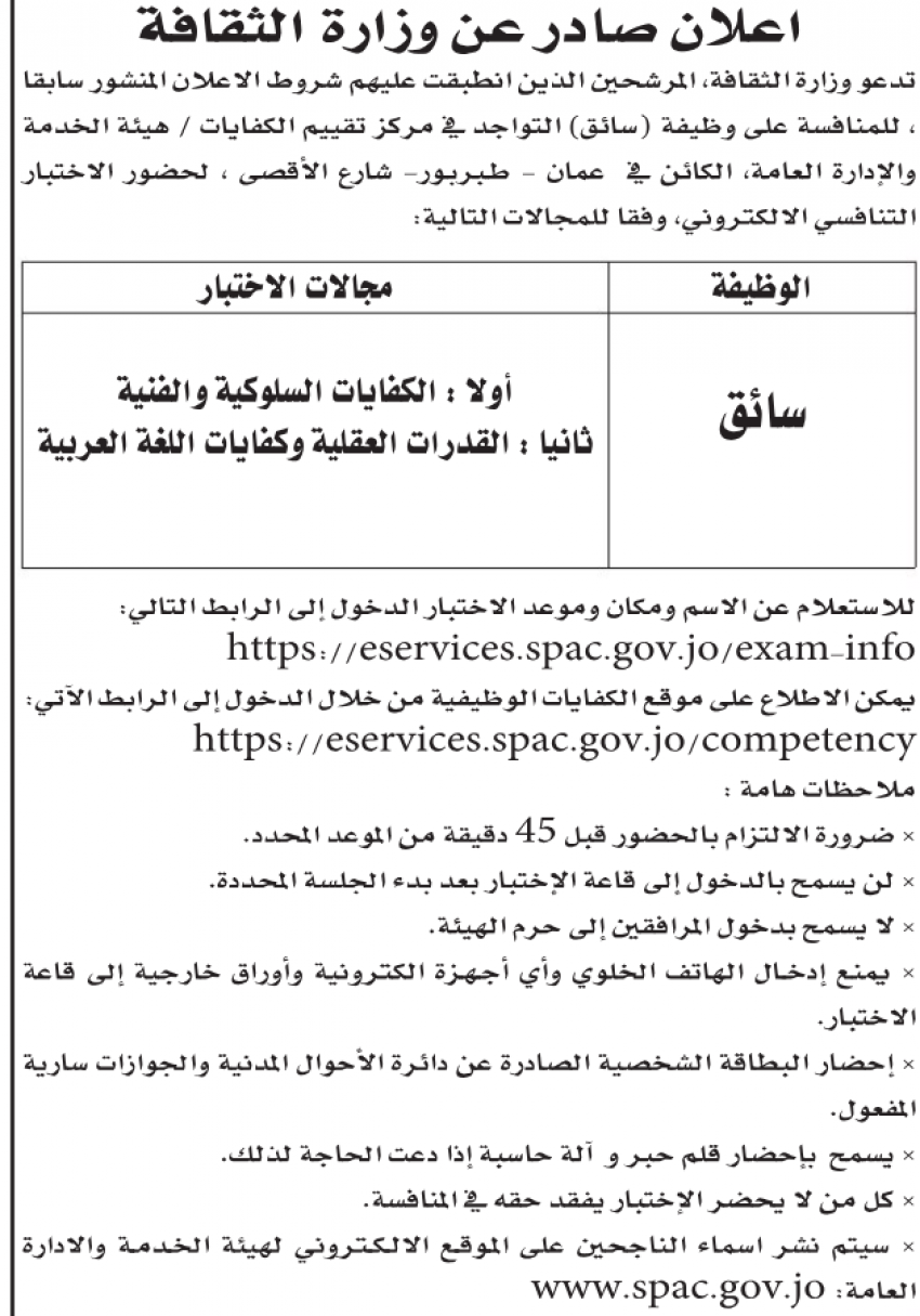 كما دعت مؤسسات حكومية أخرى، عددًا من الأشخاص لإجراء المقابلات الشخصية وإجراء الامتحان التنافسي لشغل الوظيفة.