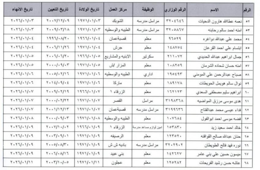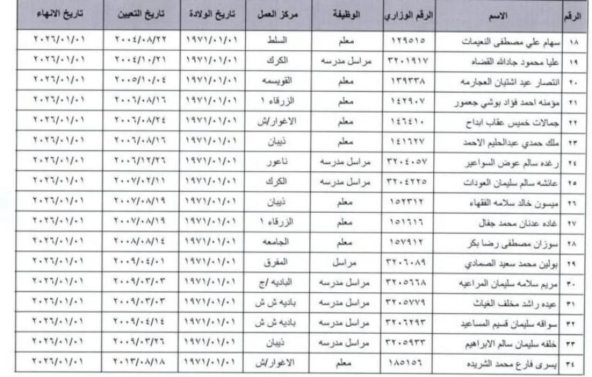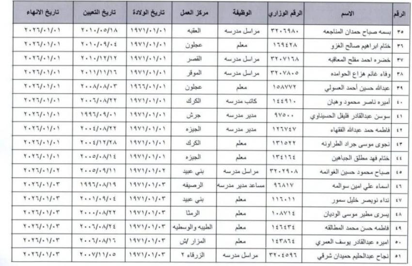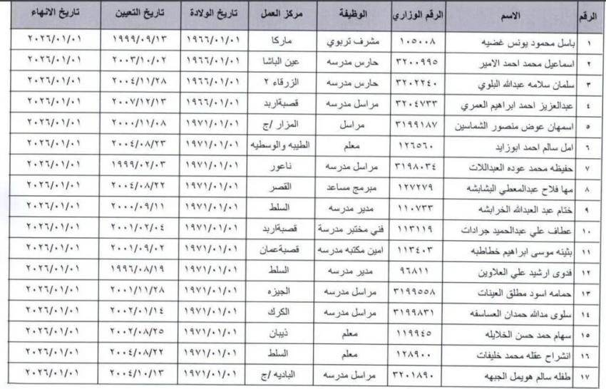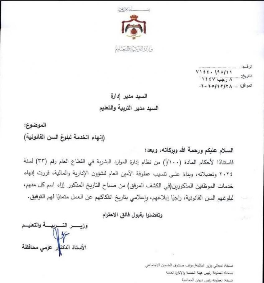 وجاء قرار الوزير استنادا لأحكام المادة (100/أ) من نظام إدارة الموارد البشرية في القطاع العام رقم 33 لسنة 2024 وتعديلاته، وبناء على تنسيب الأمين العام للشؤون الإدارية والمالية.