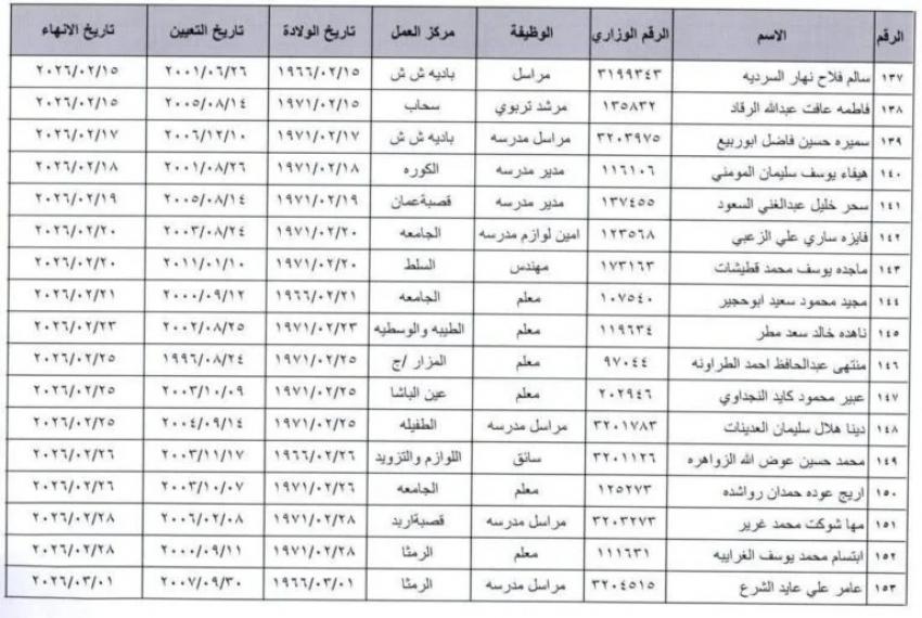 قرر وزير التربية والتعليم الدكتور عزمي محافظة، إنهاء خدمات 202 موظف في الوزارة من مختلف الوظائف، وذلك لبلوغهم السن القانونية.