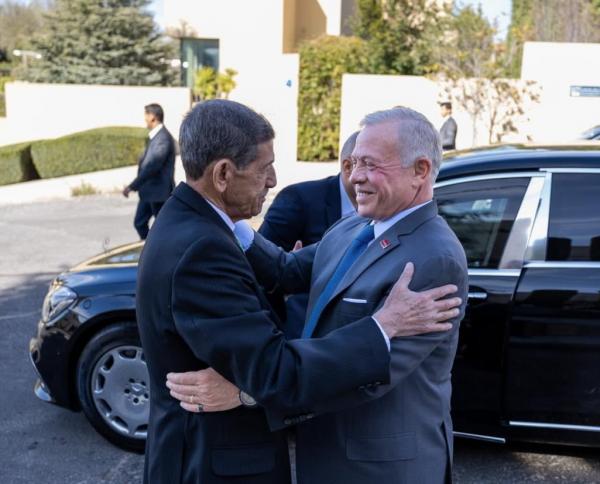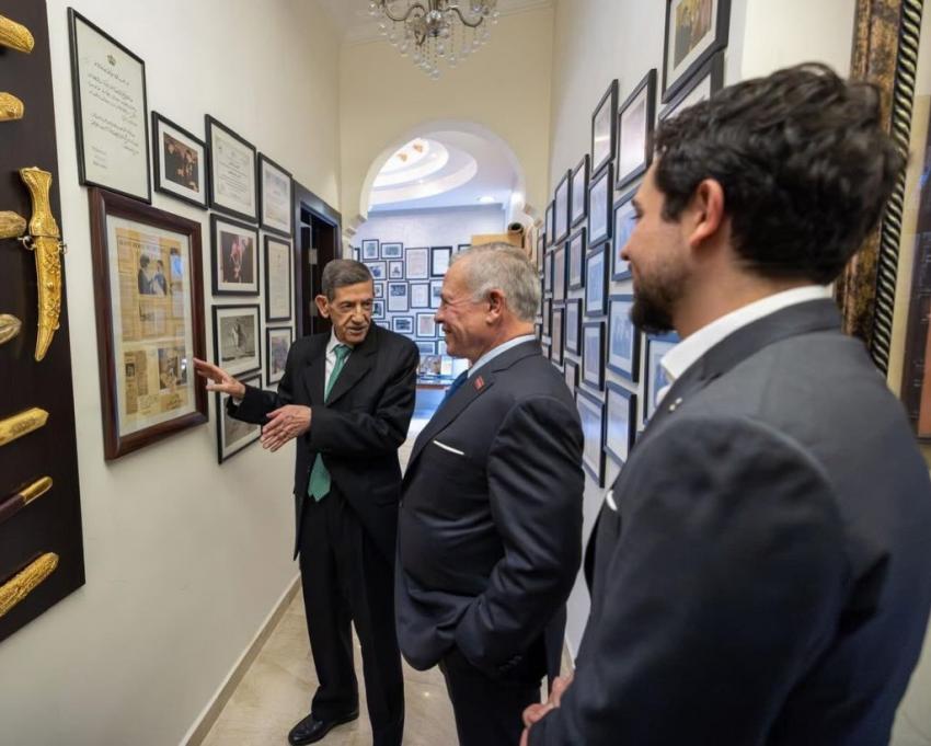 زار جلالة الملك عبدالله الثاني بن الحسين، يرافقه سمو الأمير الحسين بن عبدالله الثاني، ولي العهد، أمس السبت، رئيس الديوان الملكي الأسبق يوسف الدلابيح في دارته.