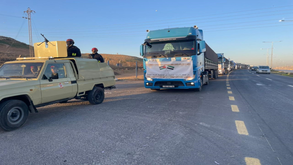 بتوجيهات ملكية سامية، سيّرت القوات المسلحة الأردنية، الاثنين، قافلة مساعدات إنسانية وغذائية إلى الجمهورية العربية السورية الشقيقة، بالتنسيق مع وزارة الخارجية وشؤون المغتربين.