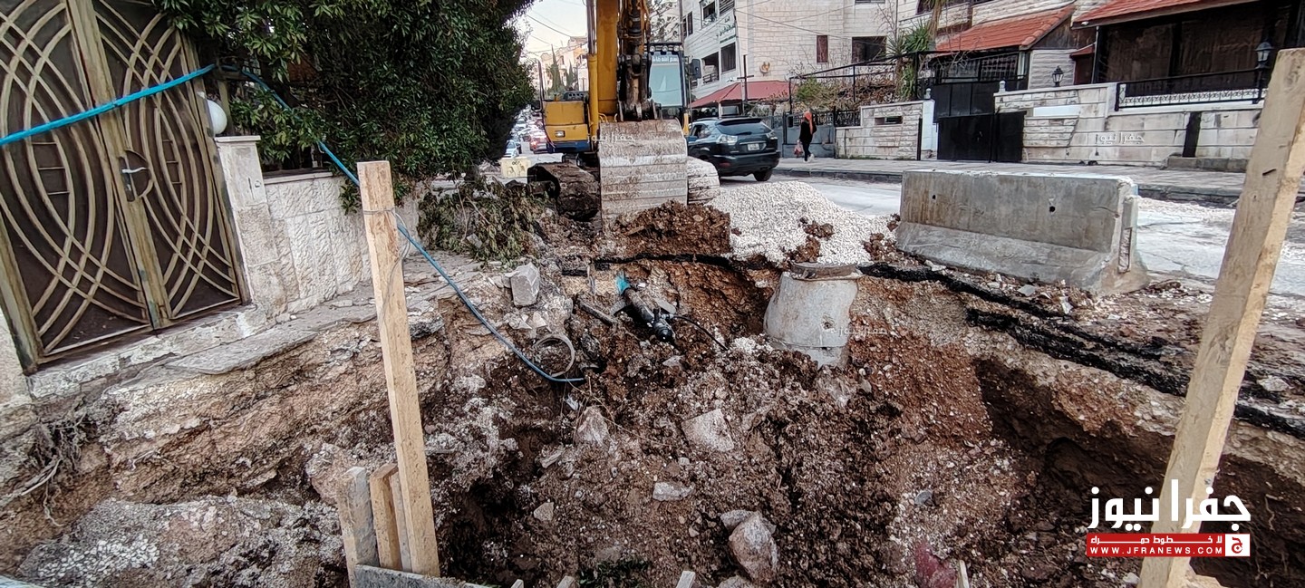 عدسة "جفرا نيوز" رصدت أعمال التنقيب والحفر، و أزمة السير الخانقة بعد إغلاق بعض الشوارع.