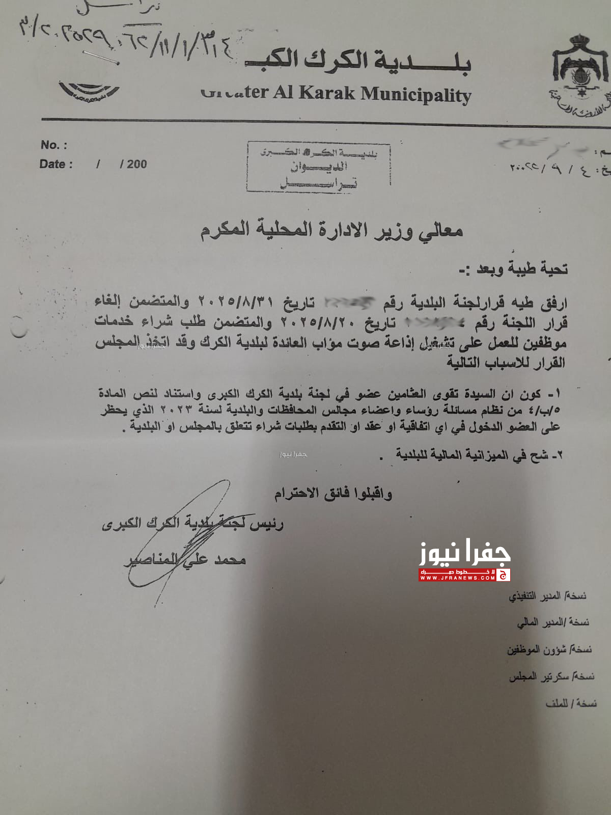 كشفت المديرة التنفيذية لإذاعة مؤاب التابعة لبلدية الكرك تقوى البطوش، أن قرار تعيينها الذي أثار الجدل عبر صفحات مواقع التواصل الإجتماعي أخيرًا ، كان عام 2024، وقبل تعيينها من قبل مجلس الوزراء كعضو باللجنة المؤقتة لإدارة بلدية الكرك.
