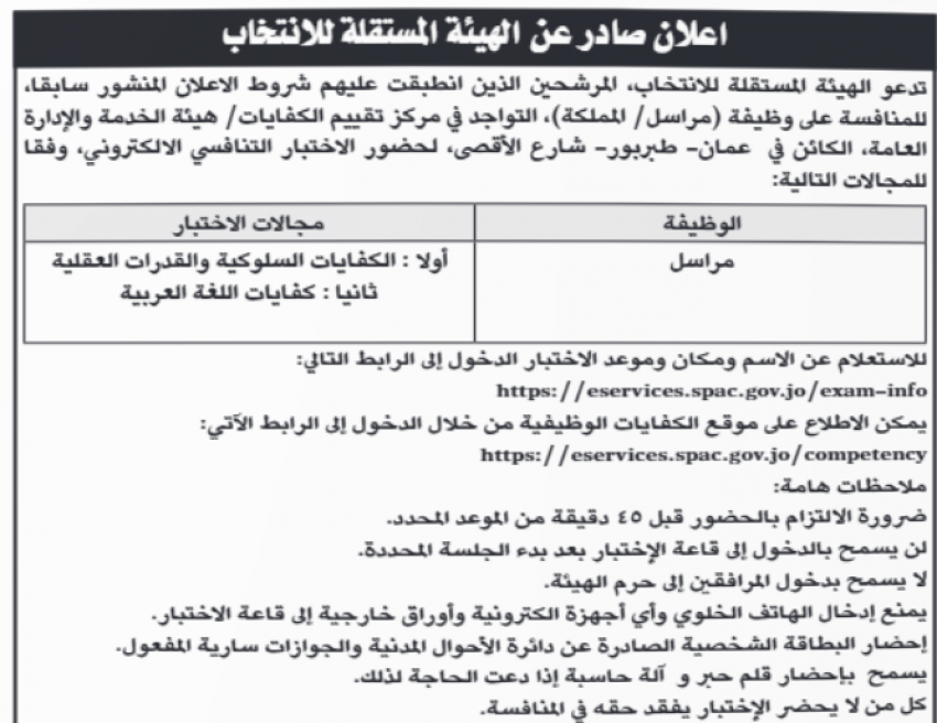 وتاليًا أسماء المدعوين إلى المقابلات الشخصية، وإعلانات مؤسسات لدعوة أشخاص لامتحان الكفايات.