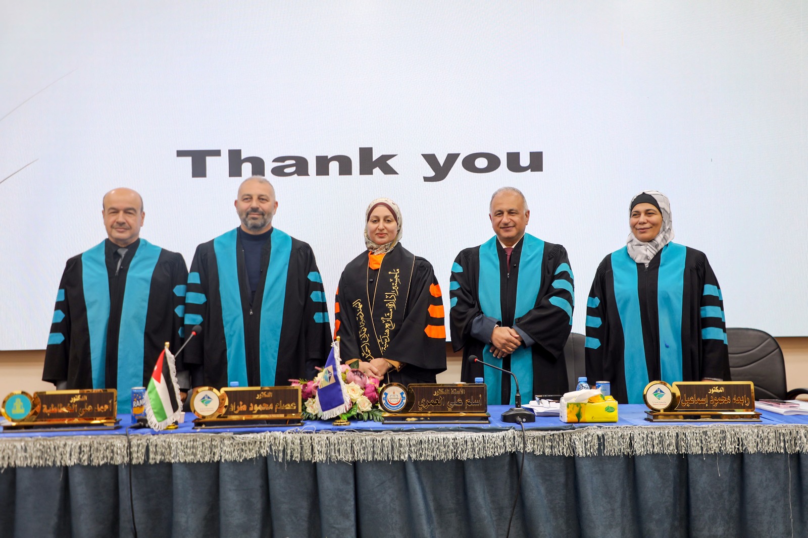 وتألفت لجنة الإشراف والمناقشة من الدكتور عصام طراد مشرفًا رئيسيًا، والدكتور أحمد الخطاطبة مشرفًا مساعدًا، والدكتور أسلم العمري مشرفًا خارجيًا، والدكتورة رابعة الوديان مشرفة داخلية، حيث أشادت اللجنة بالأهمية العلمية والتطبيقية للرسالة ودقتها البحثية، متمنية للمهندسة الهزايمة دوام التقدم والنجاح في مسيرتها المهنية.