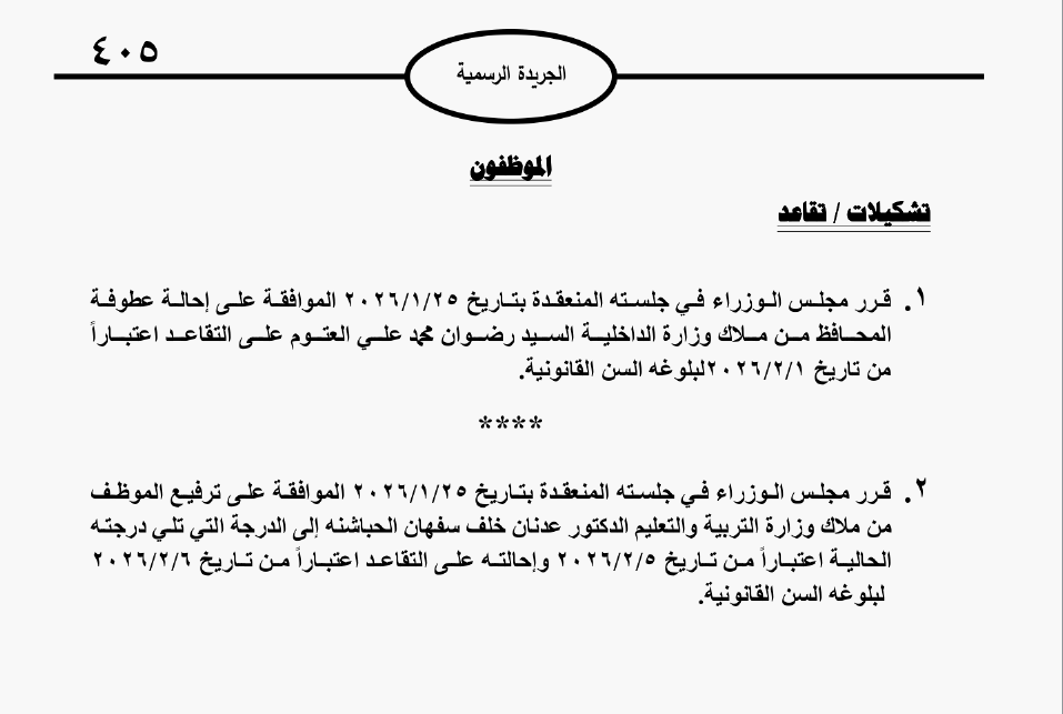 قرر مجلس الوزراء احالة موظفين إلى التقاعد