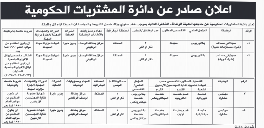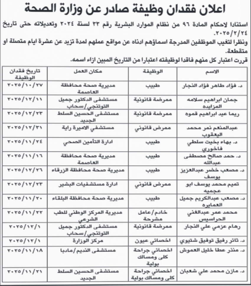 أعلنت دوائر حكومية عن رغبتها في ملء شواغر وظيفية في حين أعلنت دوائر أخرى عن أسماء موظفين فاقدين لوظائفهم.