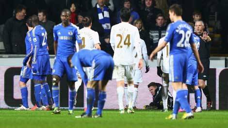 جفرا نيوز- خرج فريق تشلسي من نصف نهائي كأس رابطة المحترفين في انجلترا بعد تعادله سلبياً في أرض سوانسي 0-0، ليخرج بسبب خسارته في ملعبه 2-0.