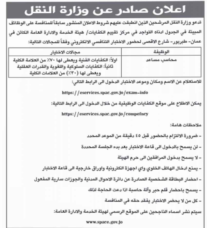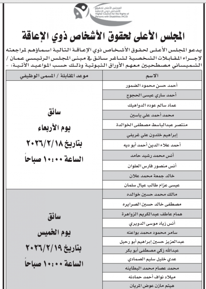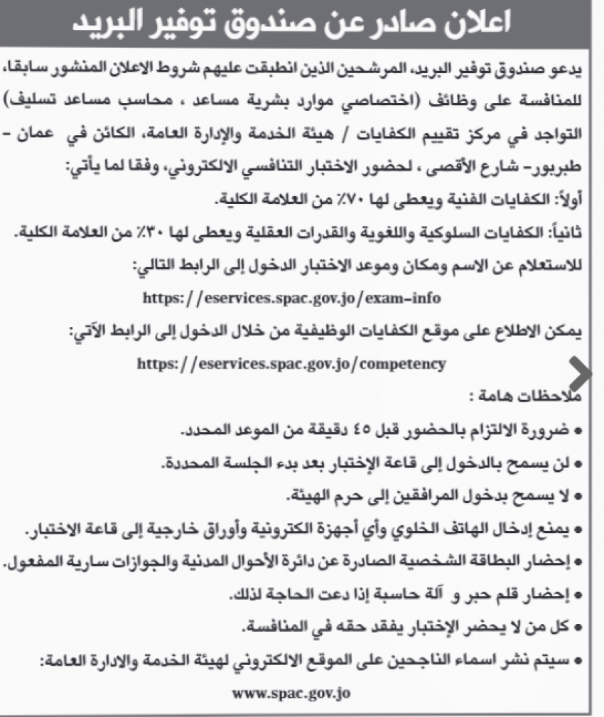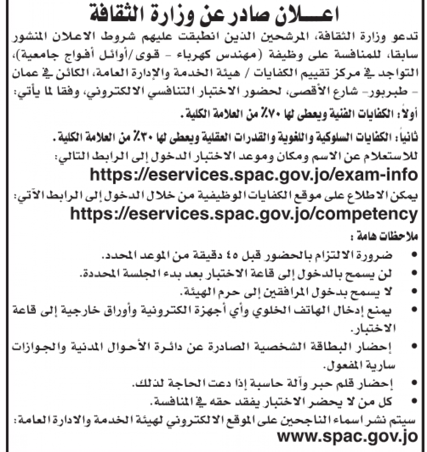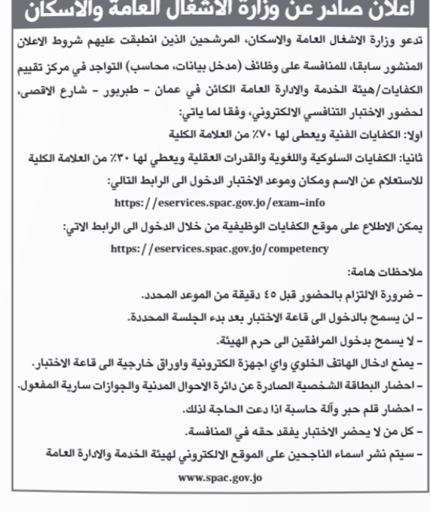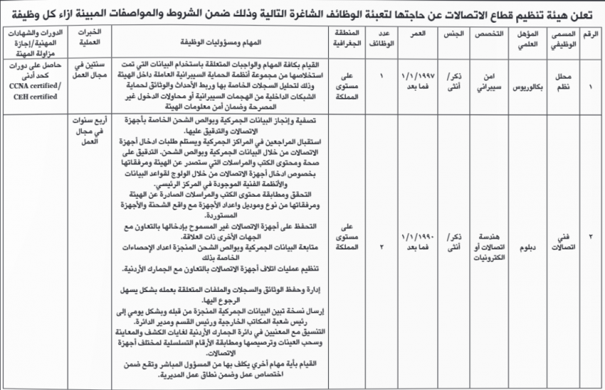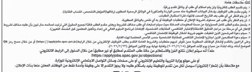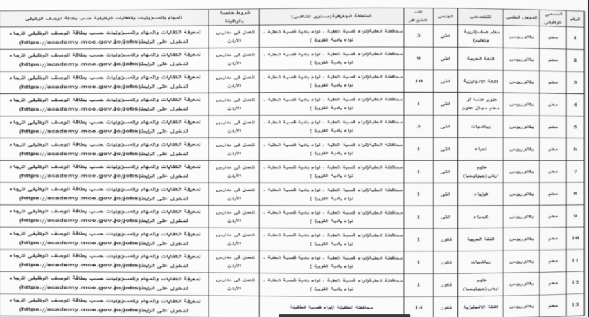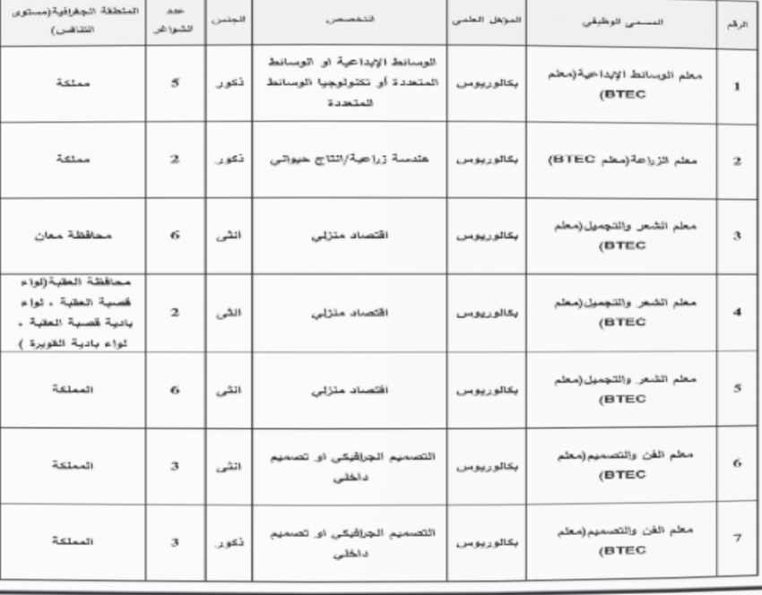 كما اعلنت وزارة التربية والتعليم ومؤسسات أخرى عن رغبته في ملء شواغر وظيفية.