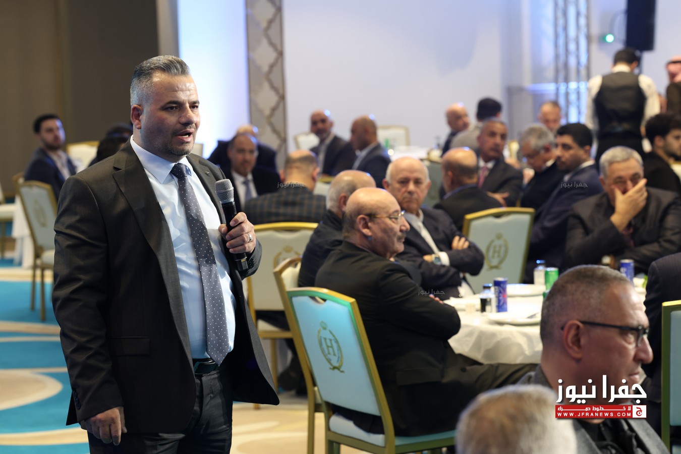 من جانبه، ألقى السيد رائد المحسيري كلمة ترحيبية رحّب فيها براعي الحفل معالي رئيس الديوان الملكي الهاشمي العامر، وبأصحاب المعالي والسعادة والعطوفة، وبجميع الضيوف الكرام، معربًا عن بالغ اعتزازه وتشرفه بإقامة هذه المأدبة في مناسبة وطنية عزيزة على قلوب الأردنيين.