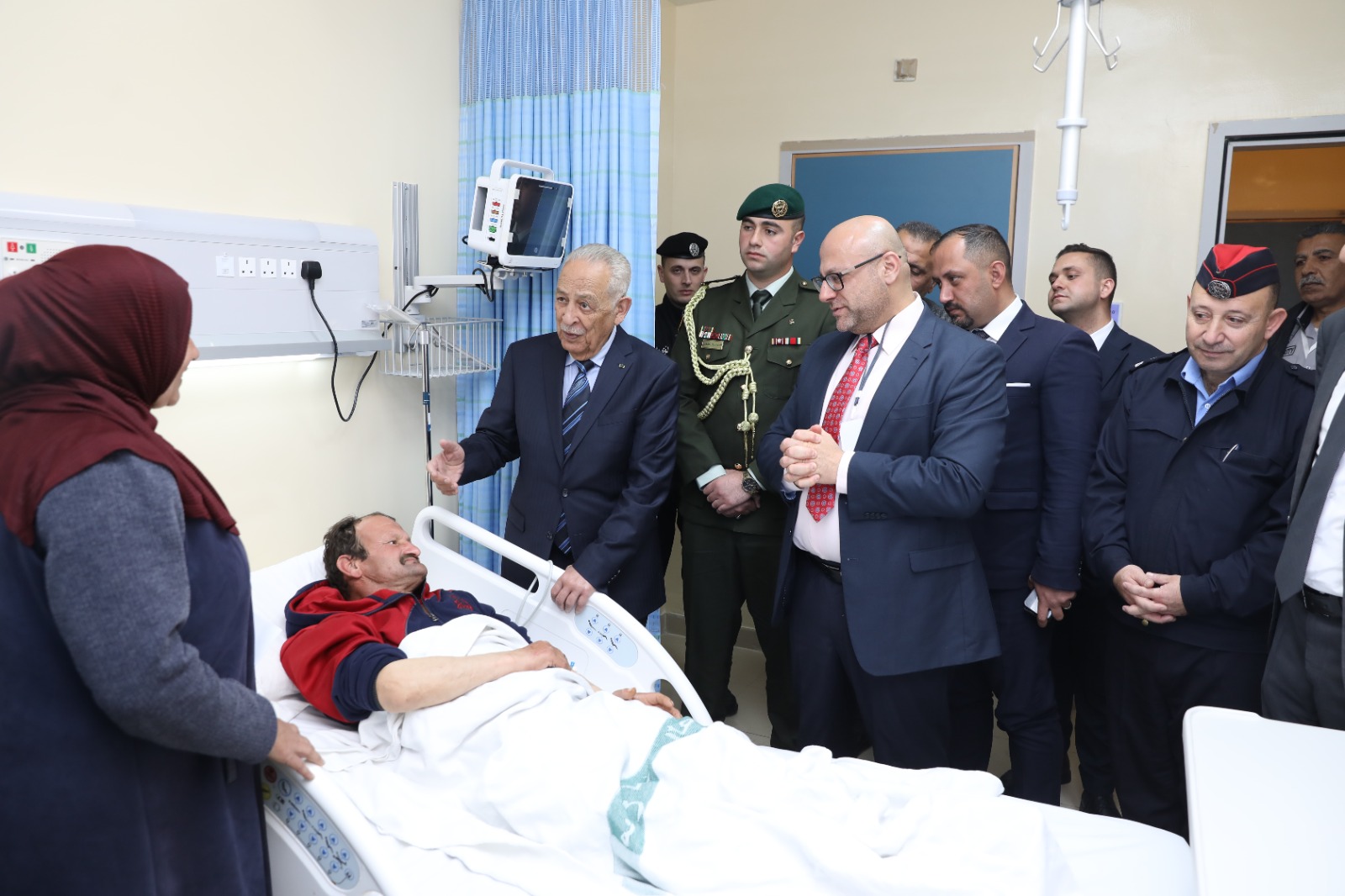 بتوجيهات من جلالة الملك عبدالله الثاني، اطمأن رئيس الديوان الملكي الهاشمي، يوسف حسن العيسوي، الاثنين، على حالة المواطن عمر عبدالرحمن عبيدات، الذي يرقد في مستشفى الأميرة بسمة في منطقة زبدة بمحافظة إربد، إثر إصابته بشظايا صاروخ.
