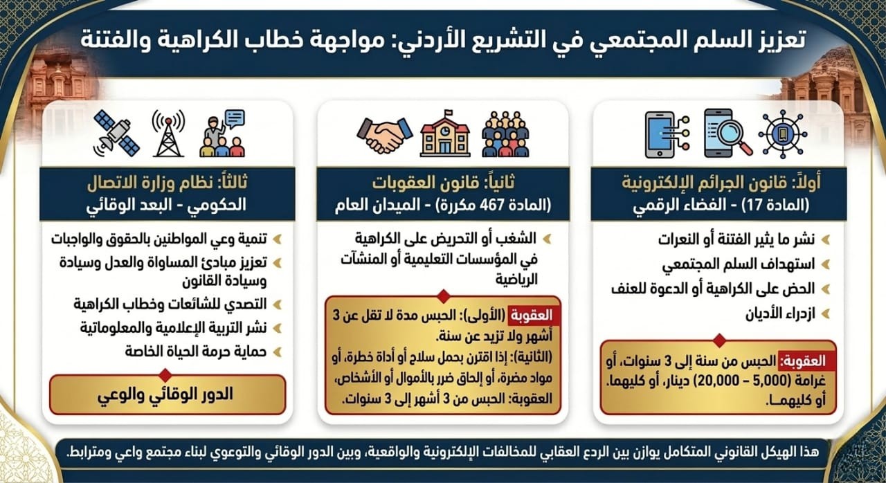 المنظومة القانونيّة الأردنيّة: أُطر مواجهة خطاب الكراهية وحماية السلم المجتمعي