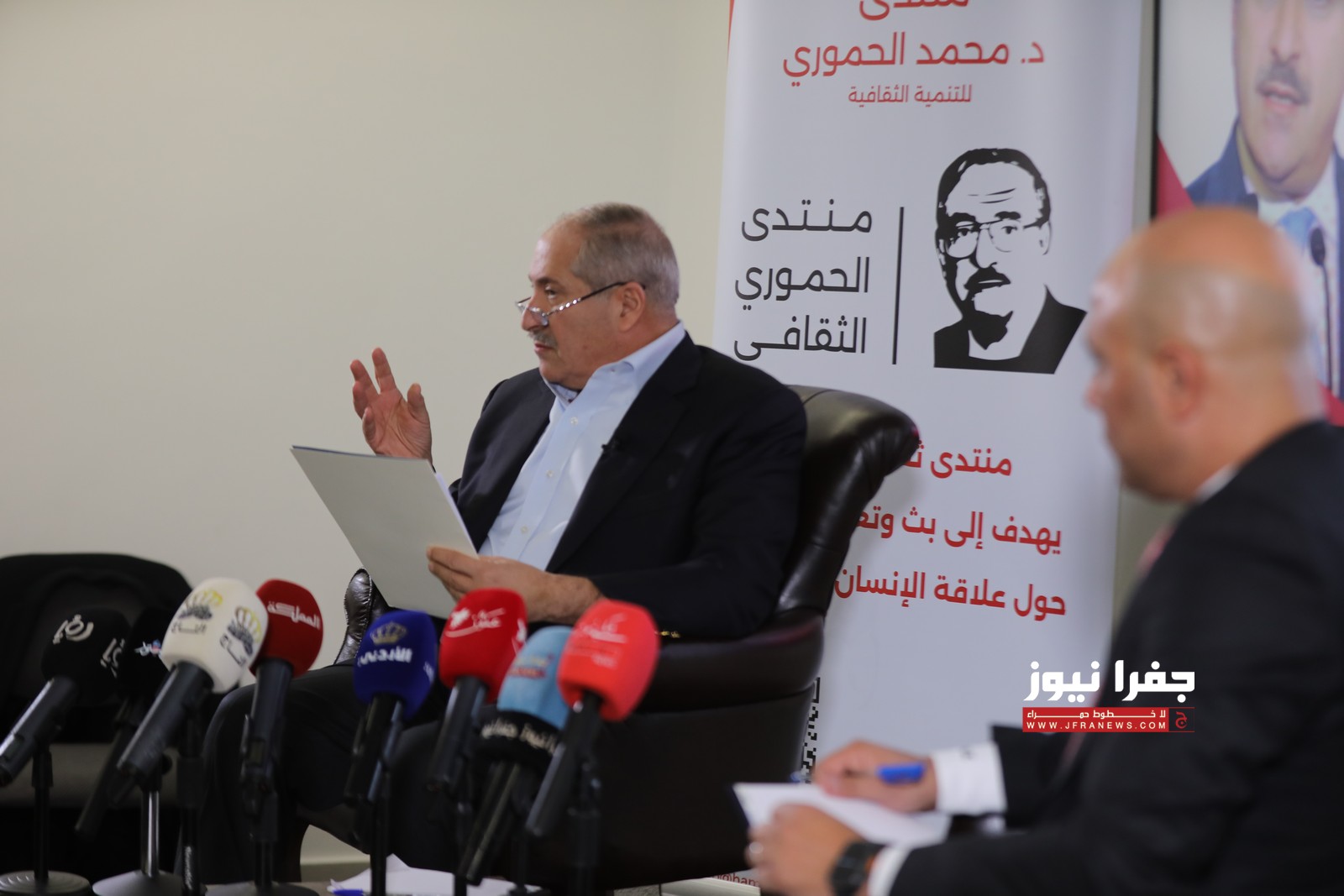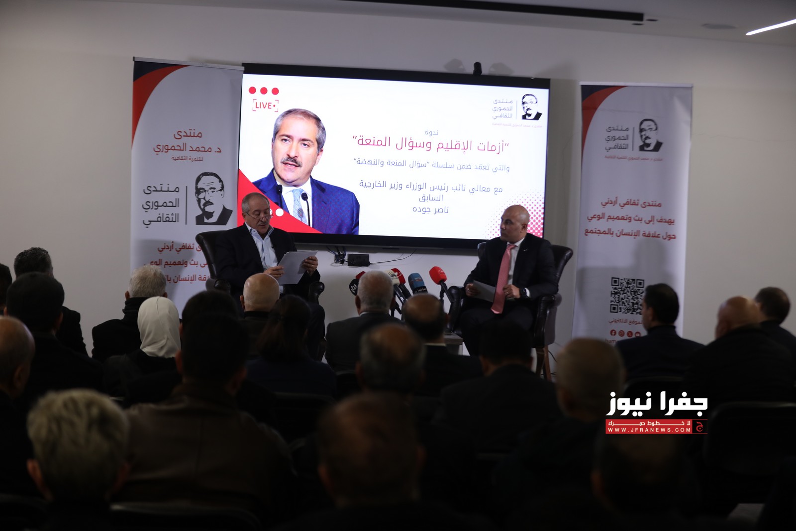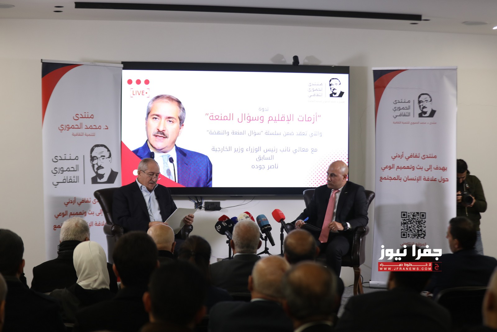 عقد منتدى محمد الحموري للتنمية الثقافية جلسة حوارية استضاف خلالها وزير الخارجية الأسبق ناصر جودة، وذلك ضمن سلسلة جلسات "سؤال المنعة والنهضة”.