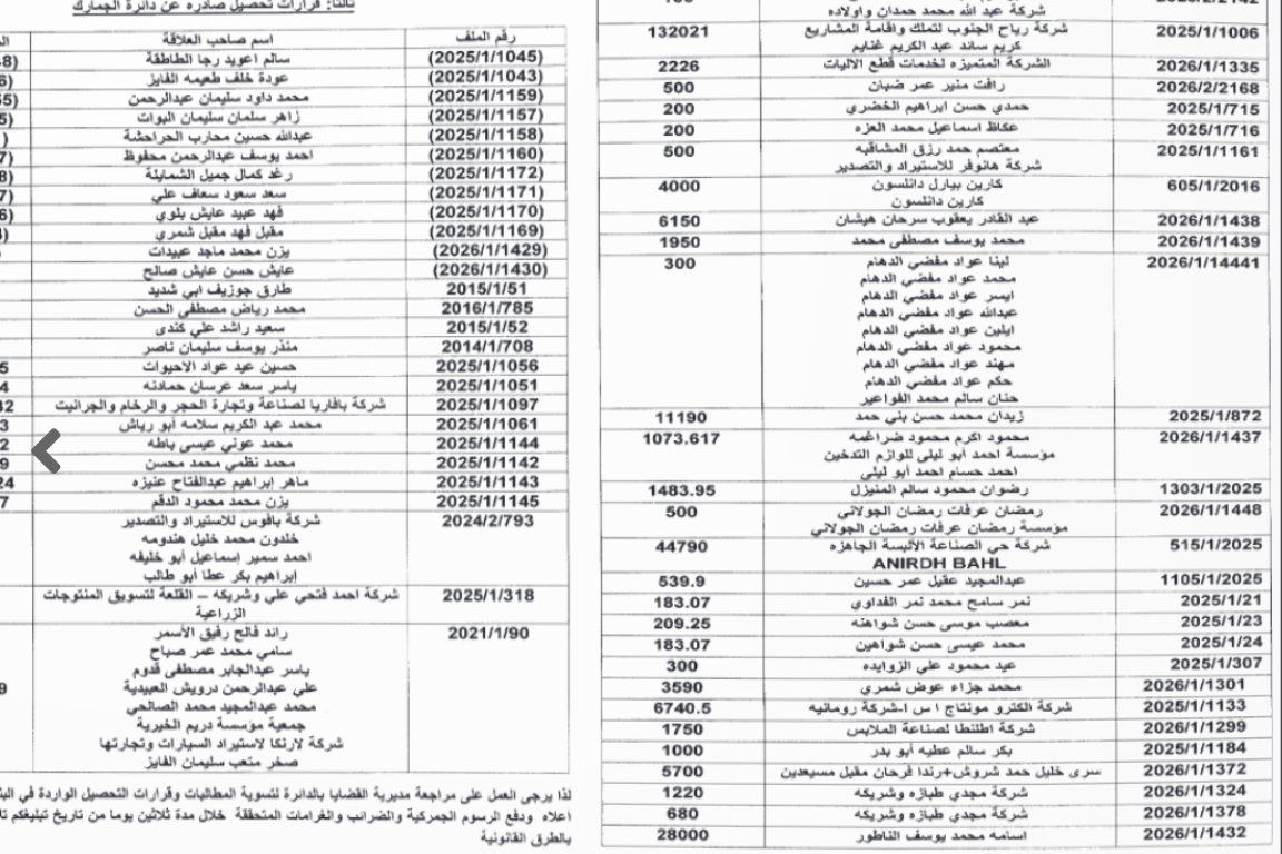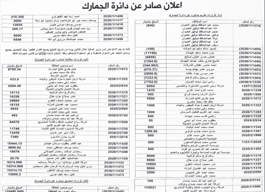 أصدرت دائرة الجمارك قرارات تغريم ومطالبة اليوم الاثنين.