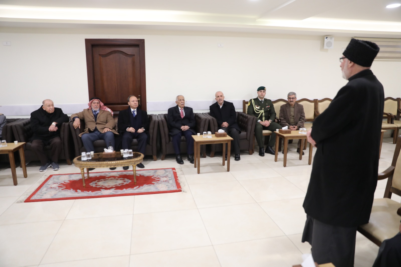 مندوبا عن جلالة الملك عبدالله الثاني وسمو الأمير الحسين بن عبدالله الثاني، ولي العهد، قدم رئيس الديوان الملكي الهاشمي يوسف حسن العيسوي، اليوم الخميس، واجب العزاء إلى آل صالح بوفاة أحمد محمد صالح.