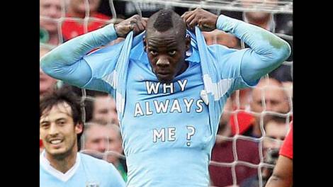 - احتفال "لماذا دائما أنا؟”، الذي وجهه إلى الصحافة عندما سجل في مانشستر سيتي هدفاً جميلاً في مباراة 6-1 الشهيرة.
