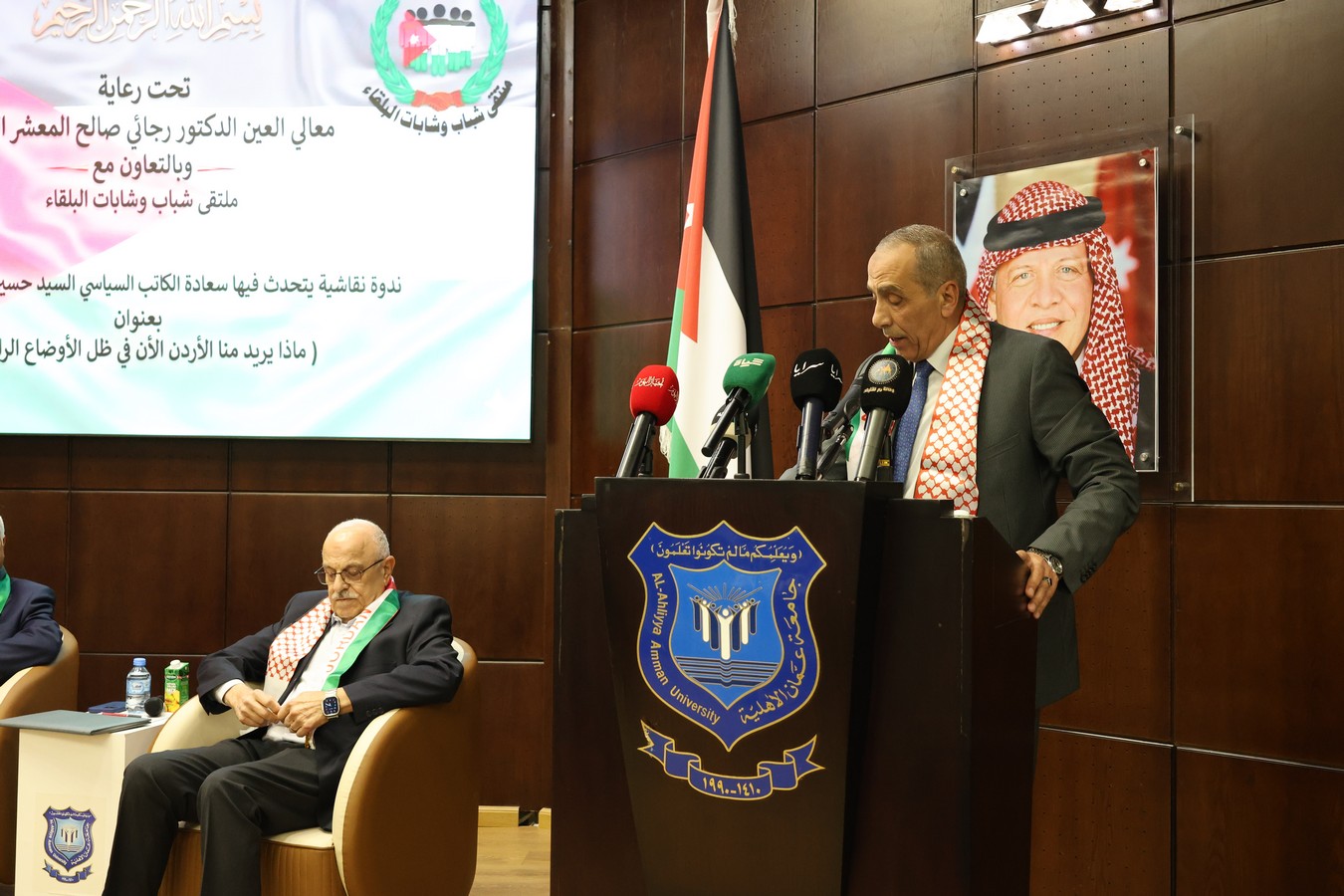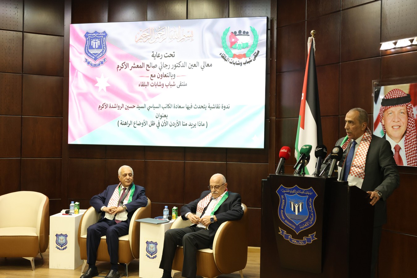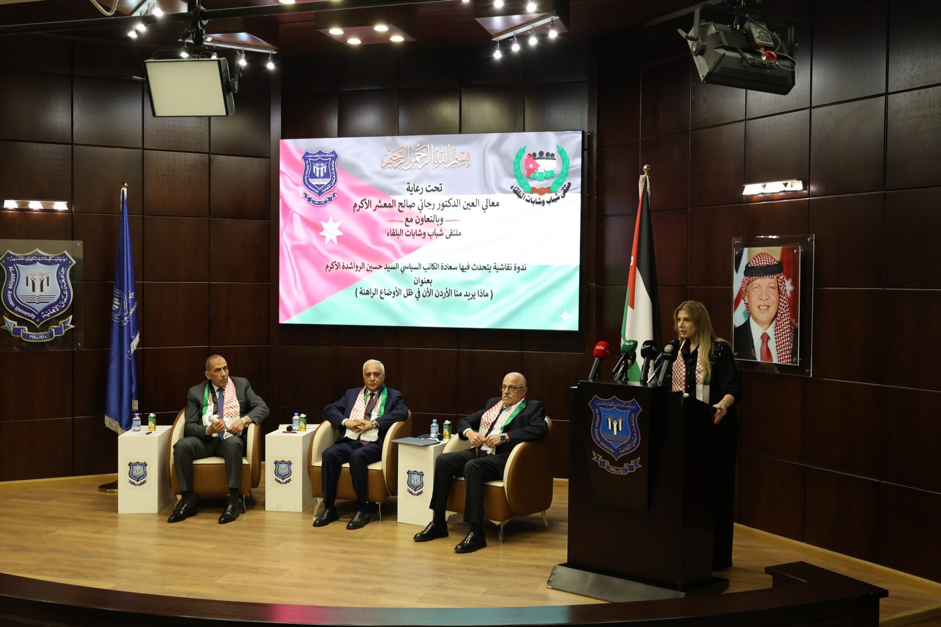 أُقيمت ندوةٌ نقاشيةٌ وطنيةٌ بعنوان "ماذا يريد منا الأردن الآن في ظل الأوضاع الراهنة”، في جامعة عمّان الأهلية، وبتنظيمٍ مشترك مع ملتقى شباب وشابات البلقاء، وبدعوةٍ كريمةٍ من الباشا فاضل الحمود، وبرعاية معالي العين رجائي المعشر، وبحضور نخبة من الشخصيات السياسية والإعلامية والأكاديمية.