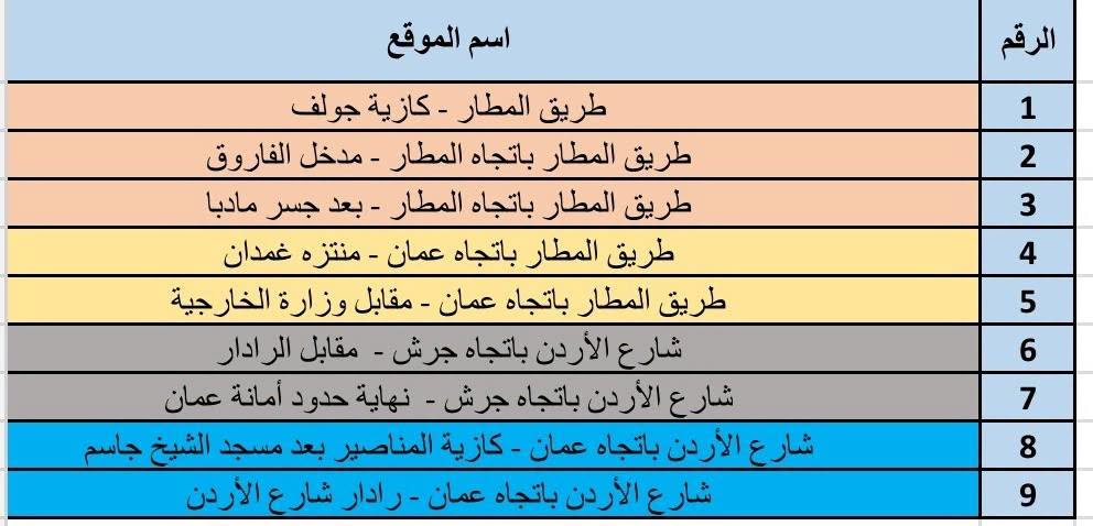 طريق المطار: (كازية جولف، مدخل الفاروق باتجاه المطار، بعد جسر مادبا باتجاه المطار).