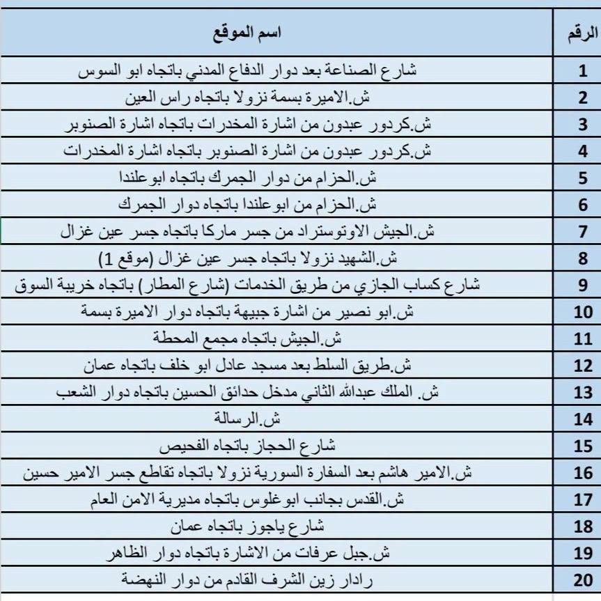شارع الأردن باتجاه جرش: (مقابل الرادار، نهاية حدود أمانة عمان).