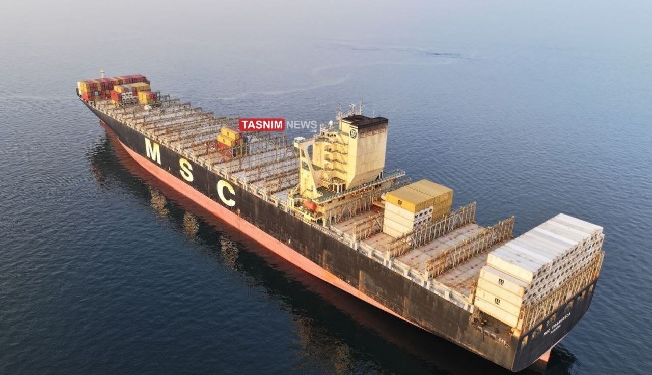 نشرت وكالة "تسنيم" الإيرانية صورا حصرية لاحتجاز البحرية الإيرانية سفينة الحاويات "MSC" الإسرائيلية خلال محاولتها عبور مضيق هرمز.