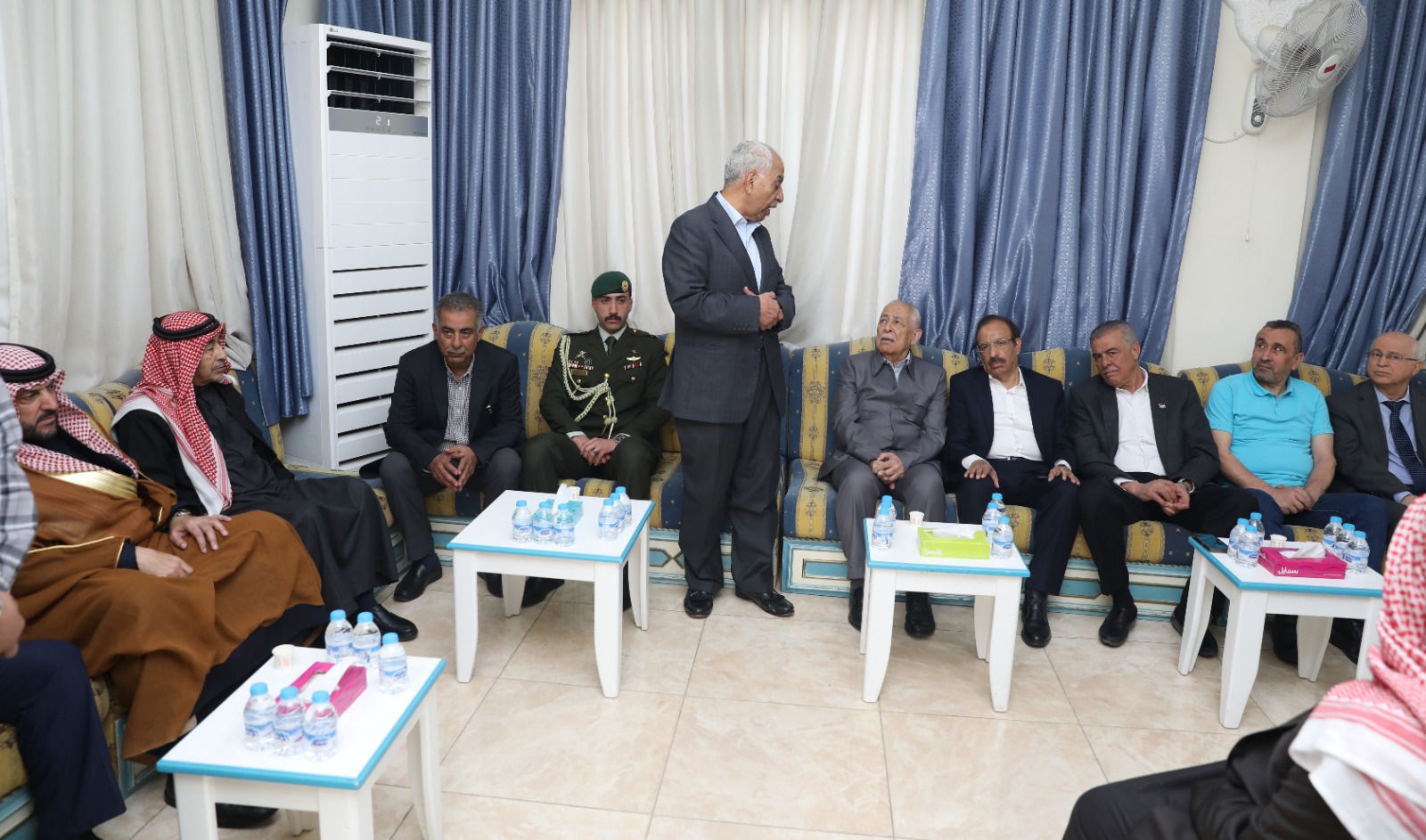 *وفي منطقة جبل الحديد بالعاصمة عمان* نقل العيسوي، خلال زيارته بيت عزاء المرحوم العقيد الركن محمد ضيف الله مناور الحديد، تعازي جلالة الملك وسمو ولي العهد إلى ذوي الفقيد وعموم عشيرة الحديد، سائلا المولى عز وجل أن يتغمده بواسع رحمته.