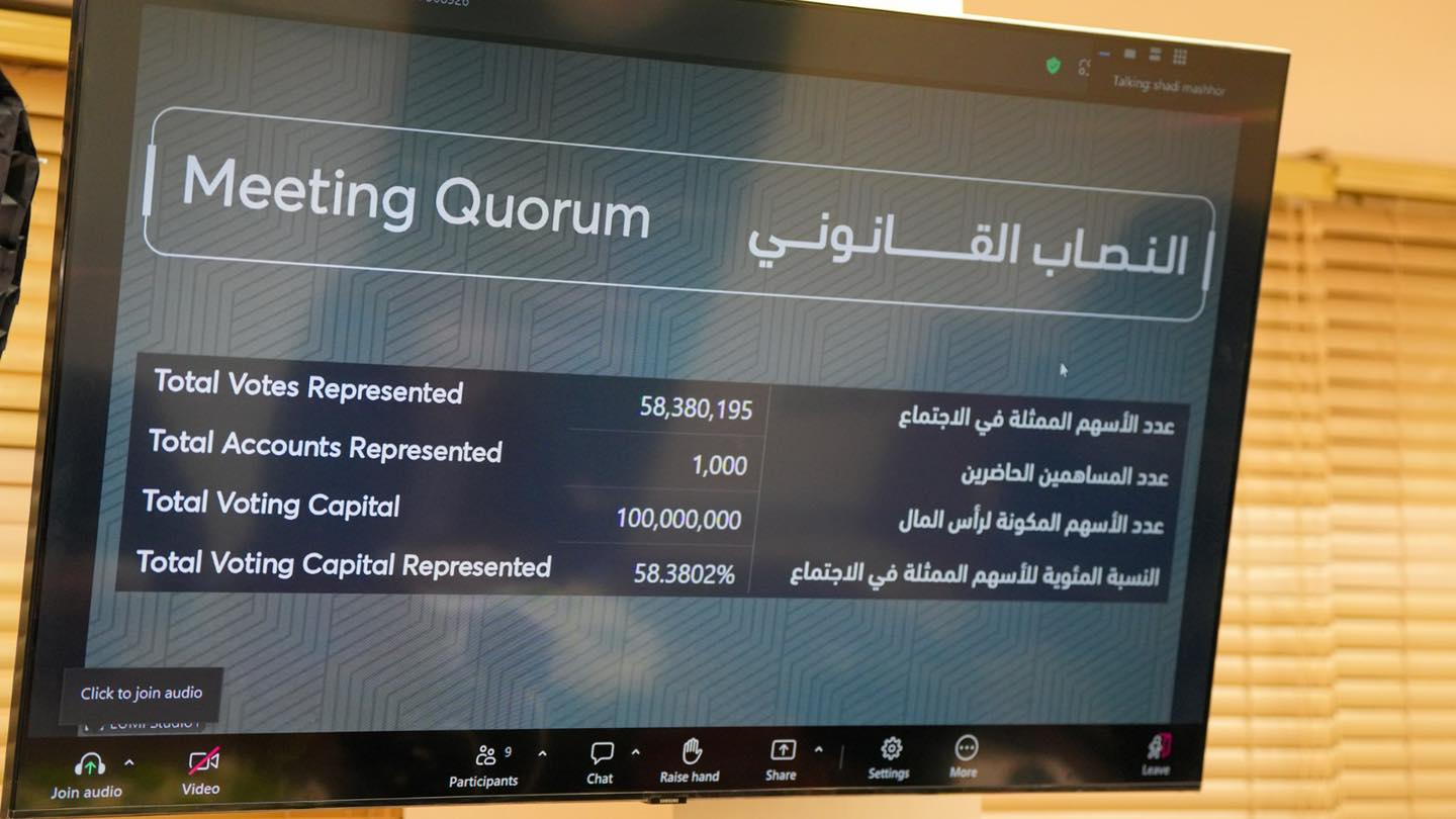 وفي مستهل الاجتماع، أقرت الهيئة العامة لمساهمي الشركة توصية مجلس الإدارة بتوزيع أرباح نقدية على المساهمين بنسبة 50 بالمئة من رأس مال الشركة المدفوع على حملة الأسهم بتاريخ الاجتماع، في خطوة تعكس قوة المركز المالي للشركة وقدرتها المستمرة على تحقيق عوائد مستقرة ومجزية للمساهمين.