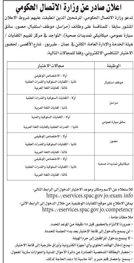 كما دعت وزارة الاتصال الحكومي، المرشحين الذين انطبقت عليهم شروط الاعلان المنشور سابقا للامتحان التنافسي.