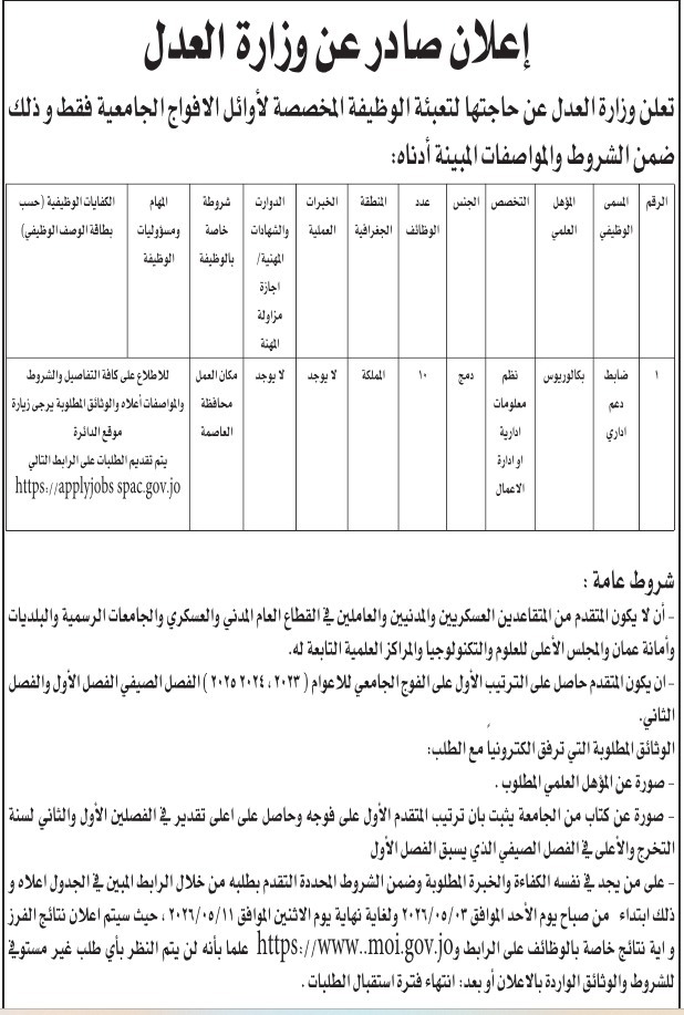 أعلنت وزارة العدل، اليوم الأربعاء عن حاجتها لتعبئة وظائف شاغرة.