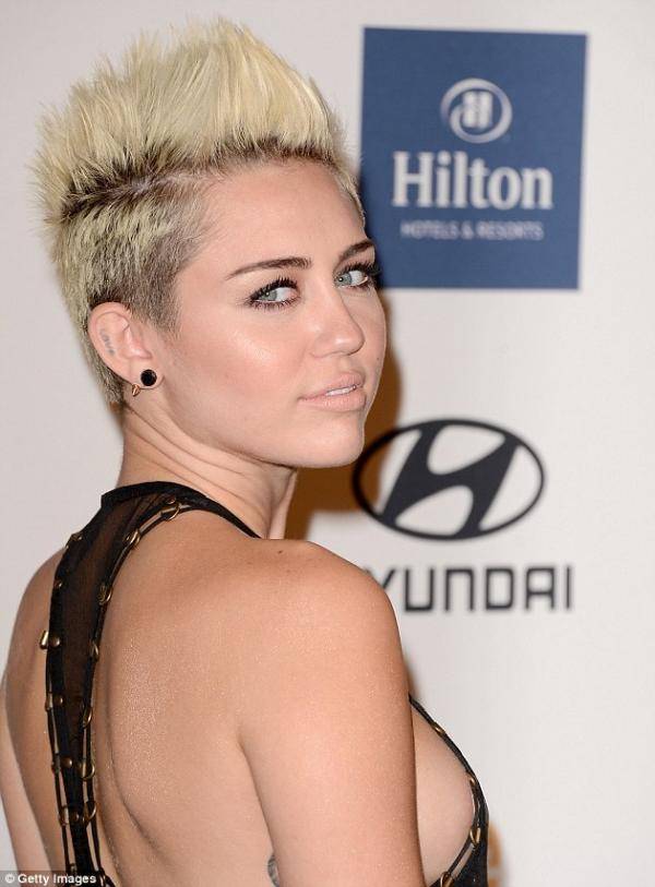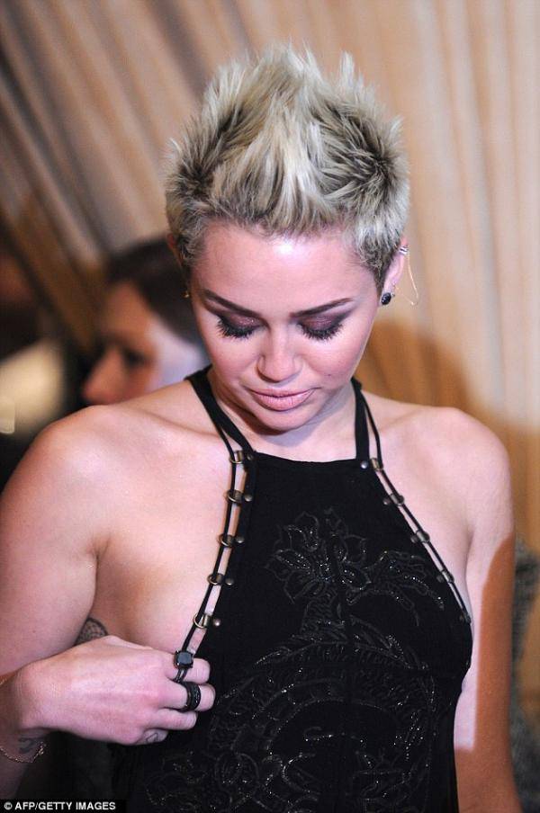 وارتدت مايلي فستاناً أسود من تصميم إميليو بوتشي ، كشف الكثير من صدرها، وظهرت حركات مايلي وهي تحاول تعديل فستانها حتى لا يظهر صدرها إلى العلن .
