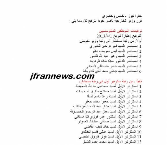 جفرا نيوز تنشر ترفيعات الموظفين الدبلوماسيين في الخارجية ... اسماء