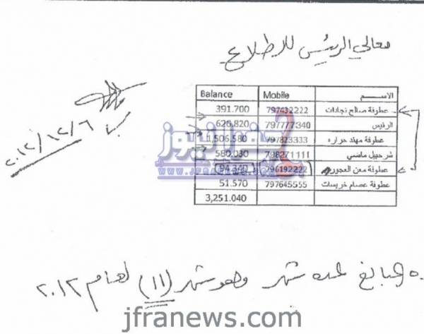 فواتير هواتف مفوضي العقبة .. وثيقة