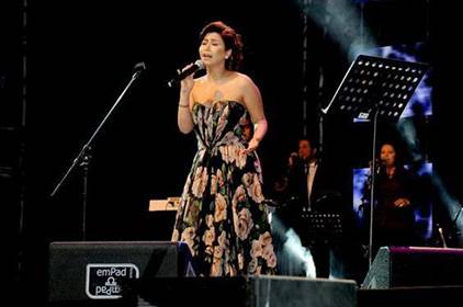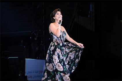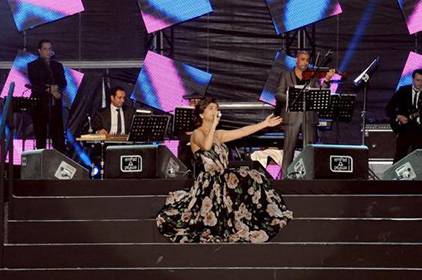 بدأت الحفلة بالنجمة المصرية التي غنت وتمايلت بفستانها الطويل وسط تفاعل الجمهور معها ومع أغنياتها. قدمت "على بالي” وهي تجلس على الدرج وظلت تستعرض فستانها للجمهور الذي ضحك وصفّق لها بحرارة.