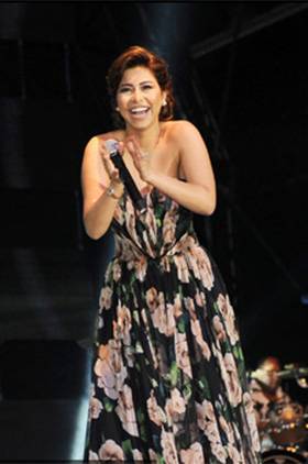 شيرين تغازل جمهورها بفستانها الطويل