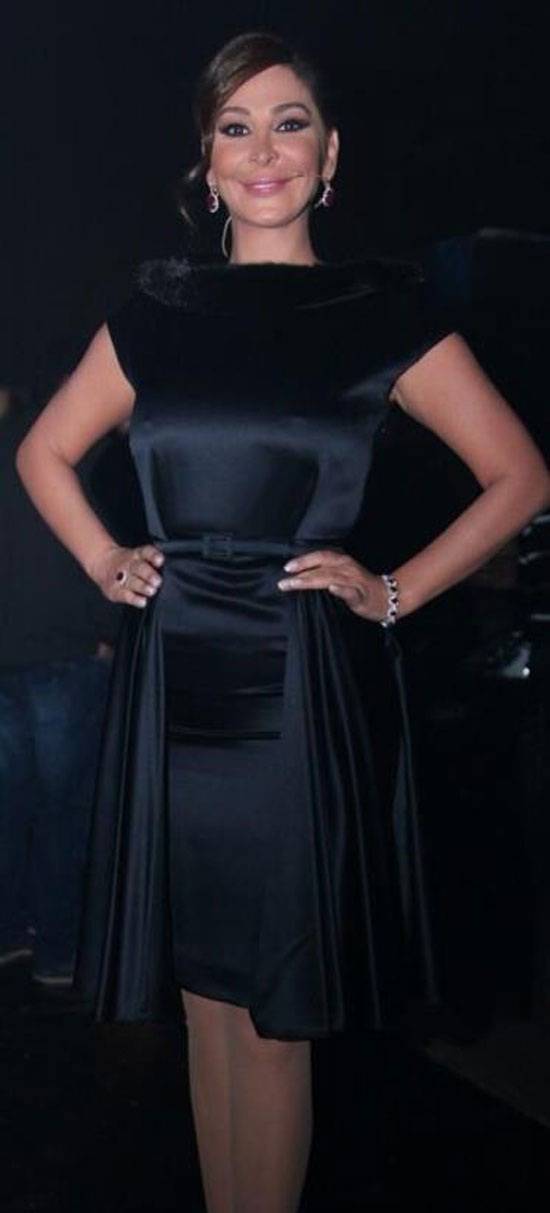 فتخلت عن فساتين إيلي صعب ولفتت الأنظار بفستان أسود قصير من الحرير من أزياء Dior ياقته من الفرو الأسود مع حزام رفيع على الوسط، وصندل أسود مشبك من غوتشي.